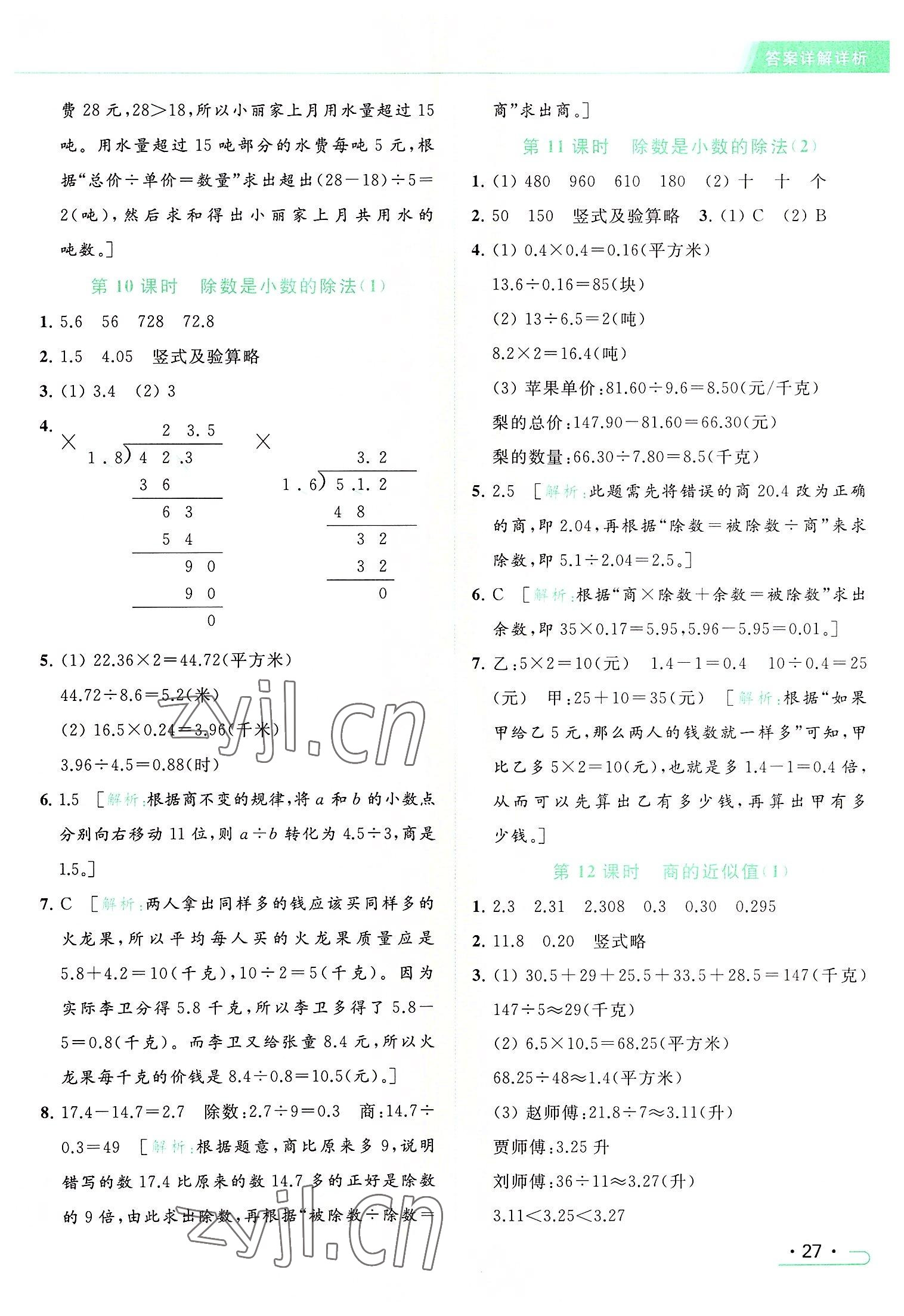2022年亮点给力提优课时作业本五年级数学上册江苏版参考答案第27页