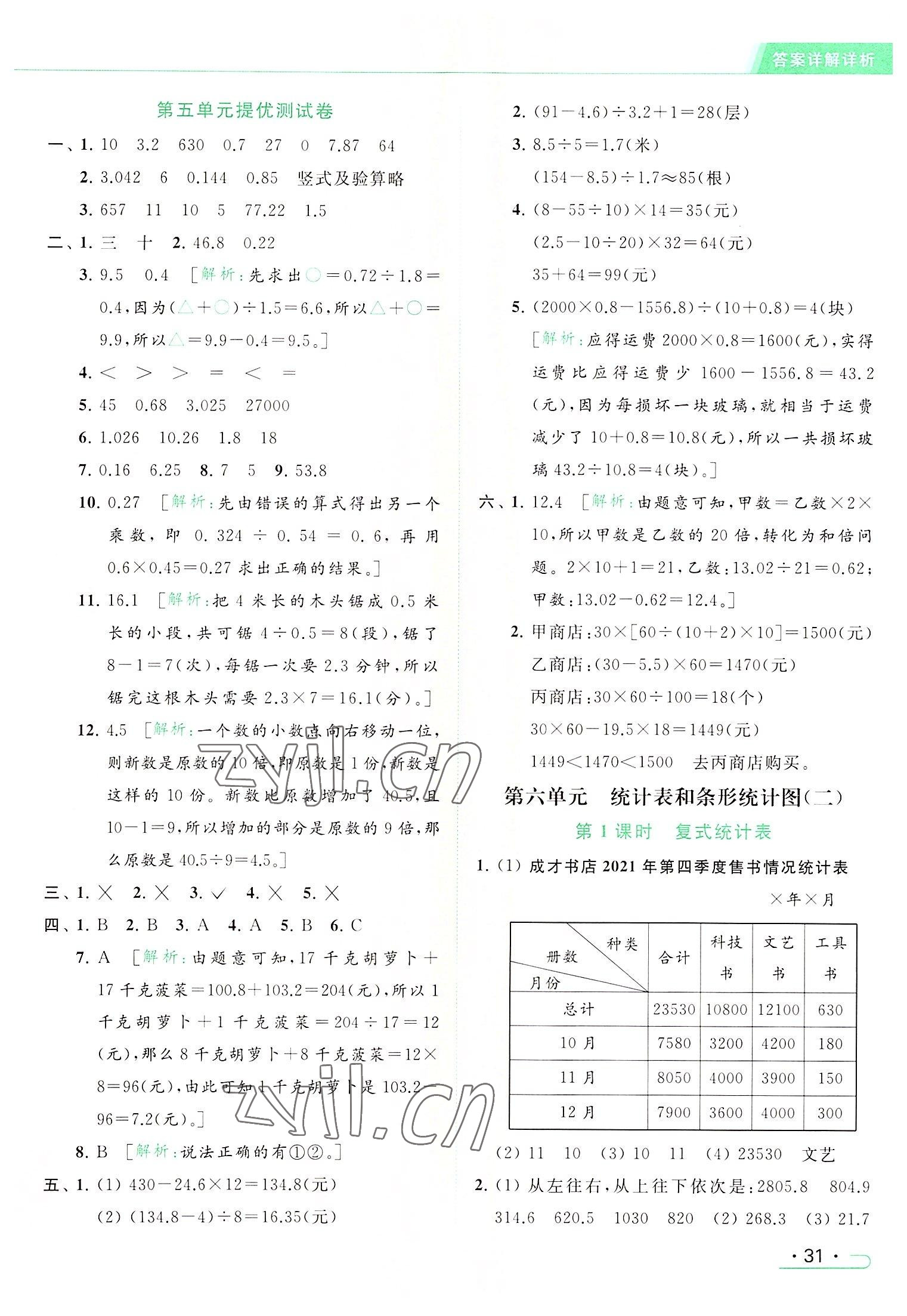 2022年亮点给力提优课时作业本五年级数学上册江苏版参考答案第31页