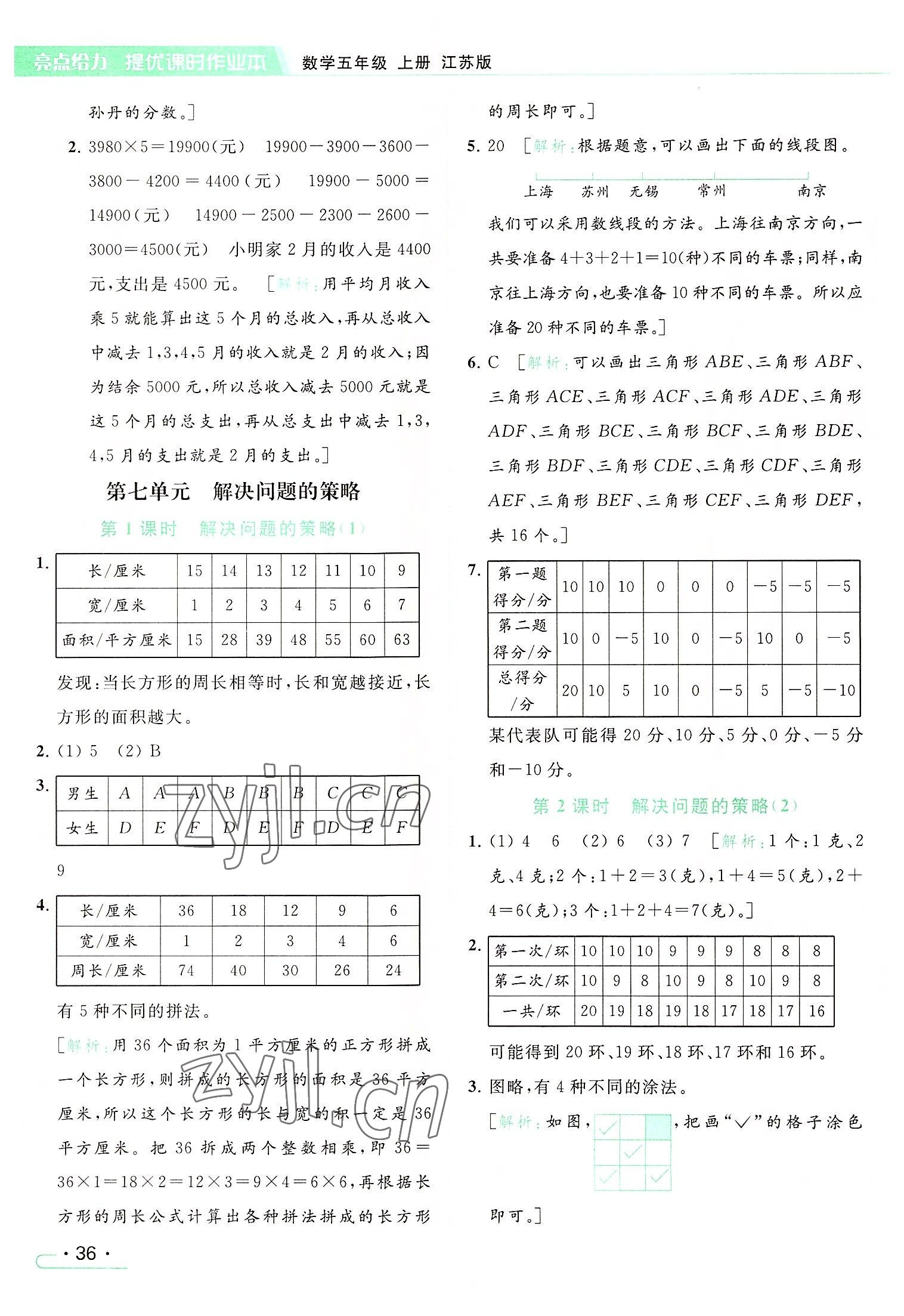 2022年亮点给力提优课时作业本五年级数学上册江苏版参考答案第36页