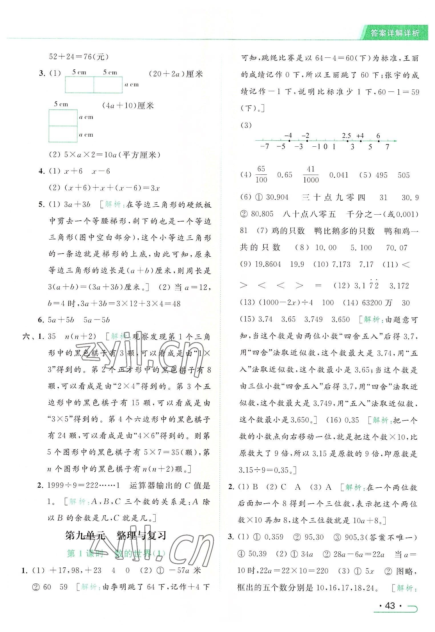 2022年亮点给力提优课时作业本五年级数学上册江苏版参考答案第43页
