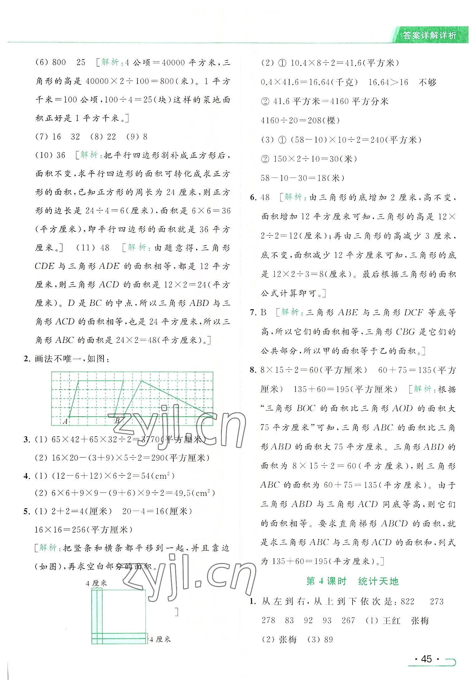 2022年亮点给力提优课时作业本五年级数学上册江苏版参考答案第45页