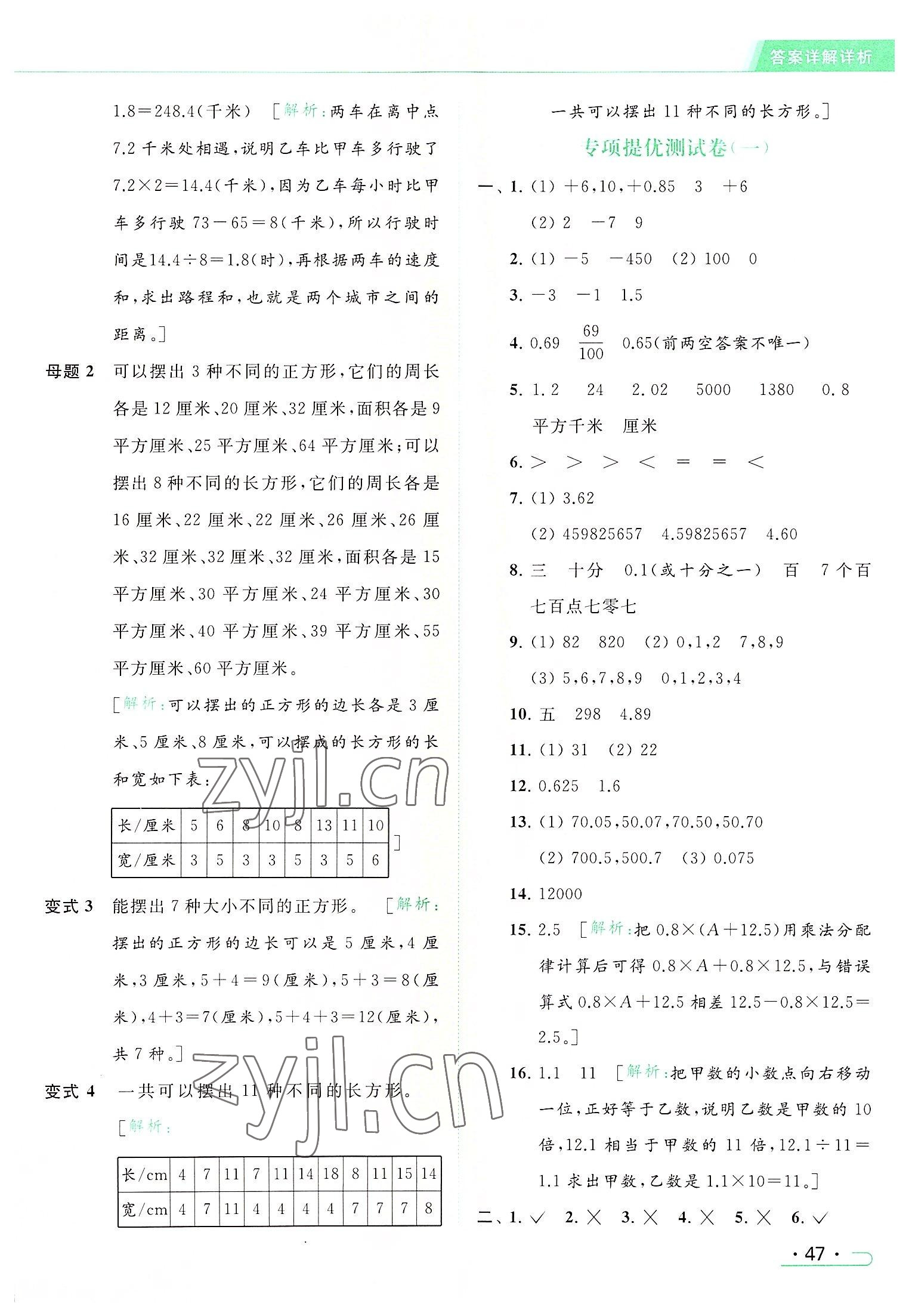 2022年亮点给力提优课时作业本五年级数学上册江苏版参考答案第47页