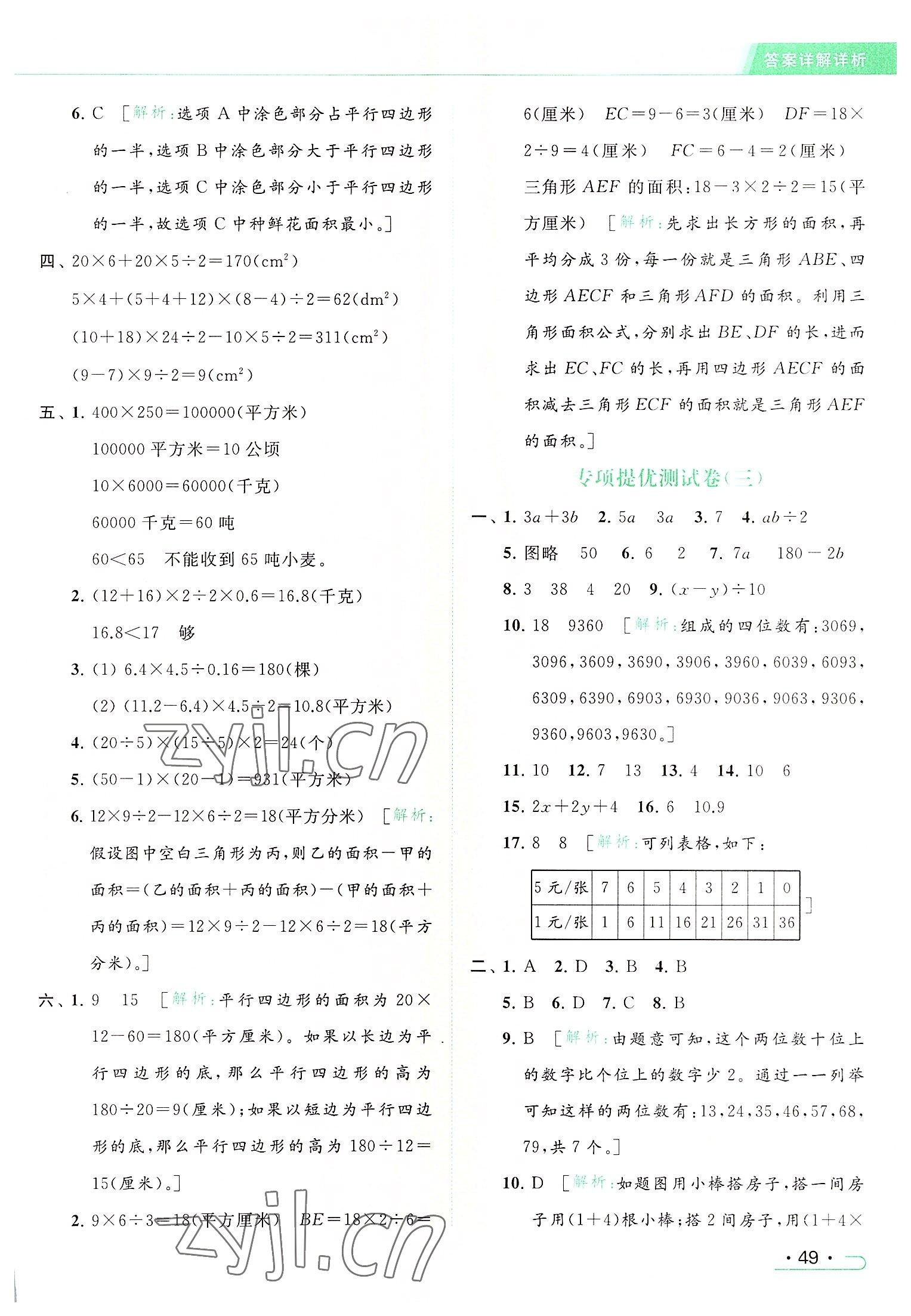 2022年亮点给力提优课时作业本五年级数学上册江苏版参考答案第49页
