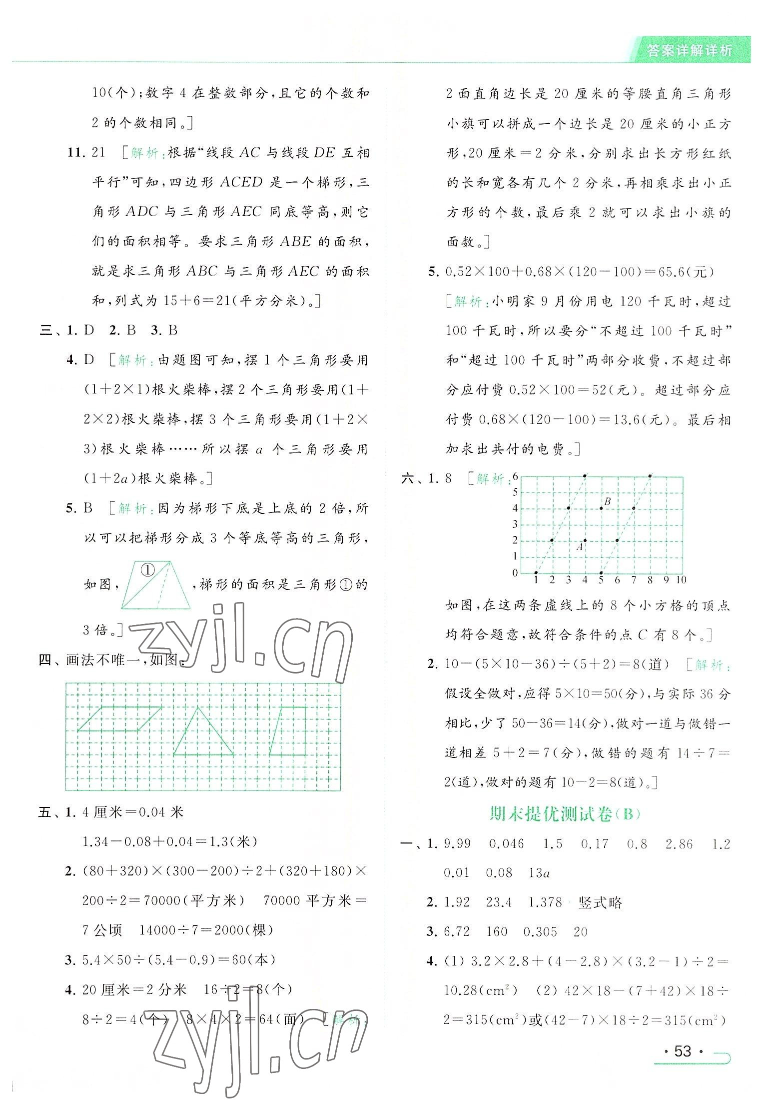2022年亮点给力提优课时作业本五年级数学上册江苏版参考答案第53页