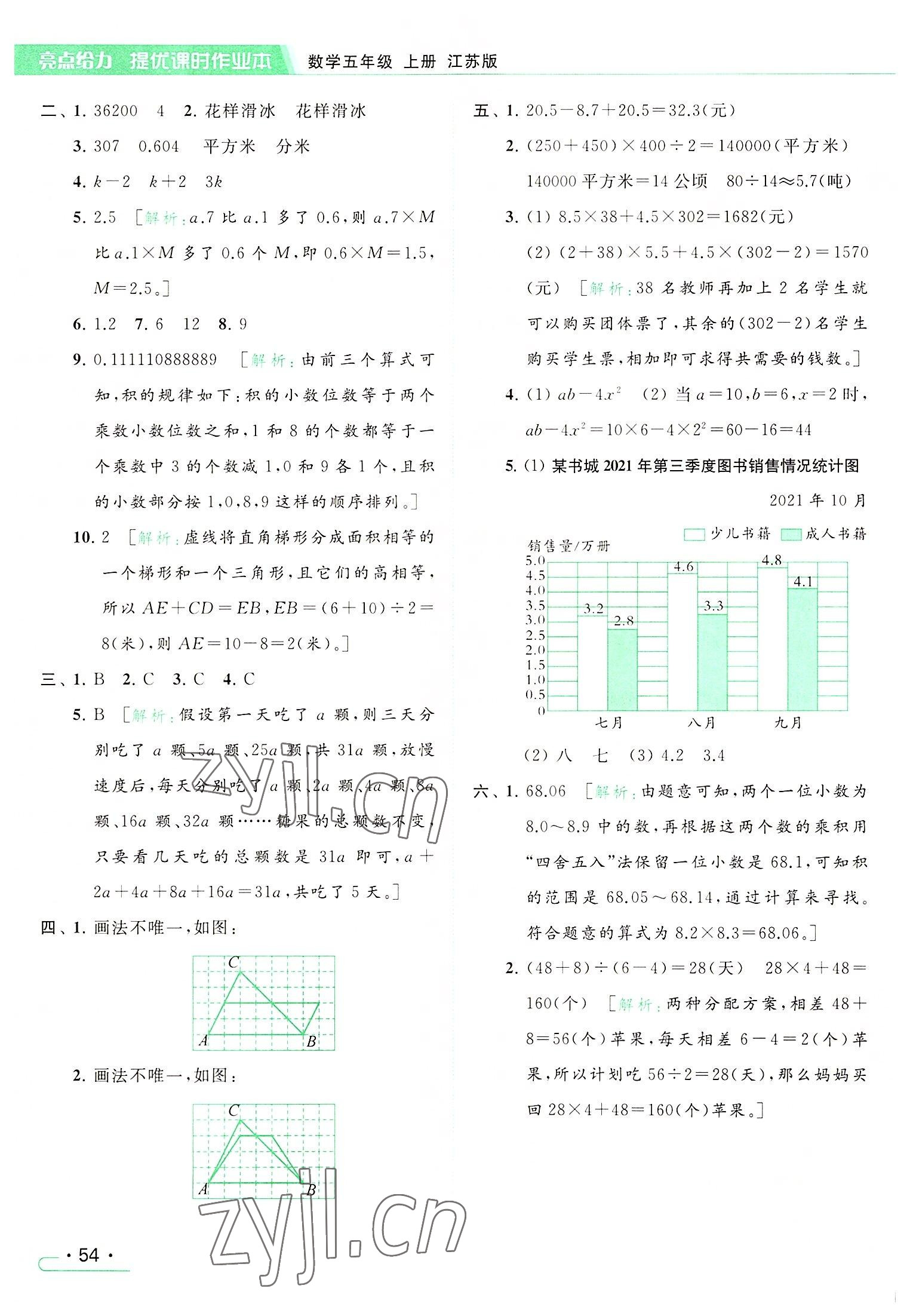 2022年亮点给力提优课时作业本五年级数学上册江苏版参考答案第54页