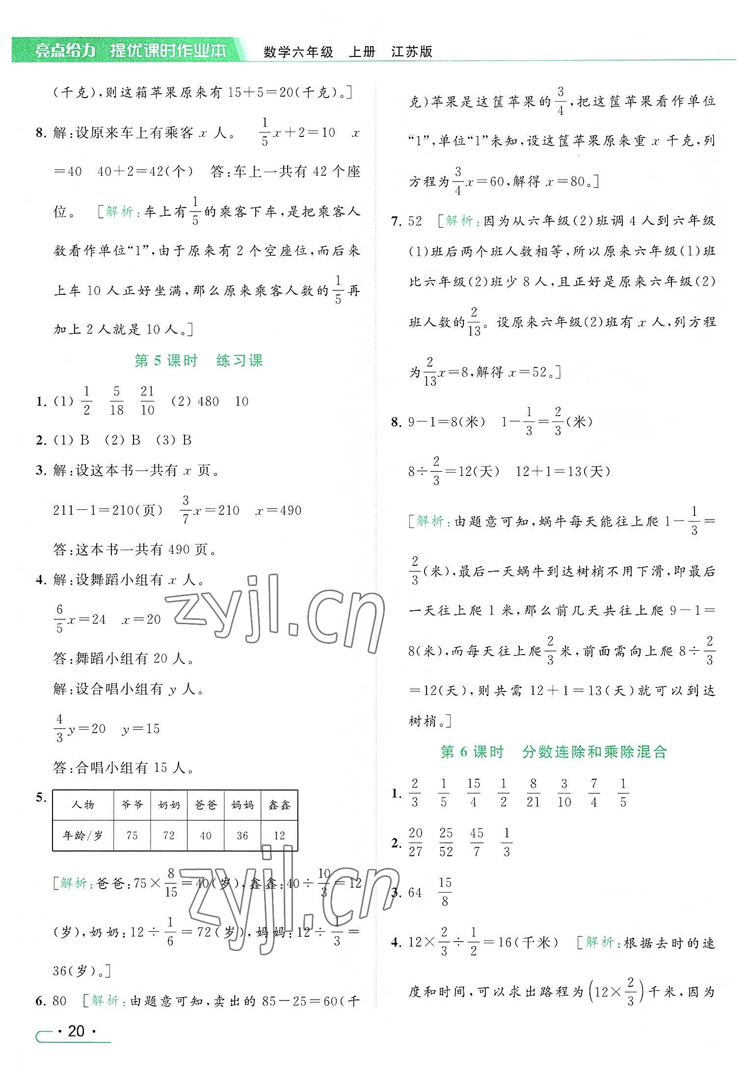2022年亮点给力提优课时作业本六年级数学上册江苏版参考答案第20页