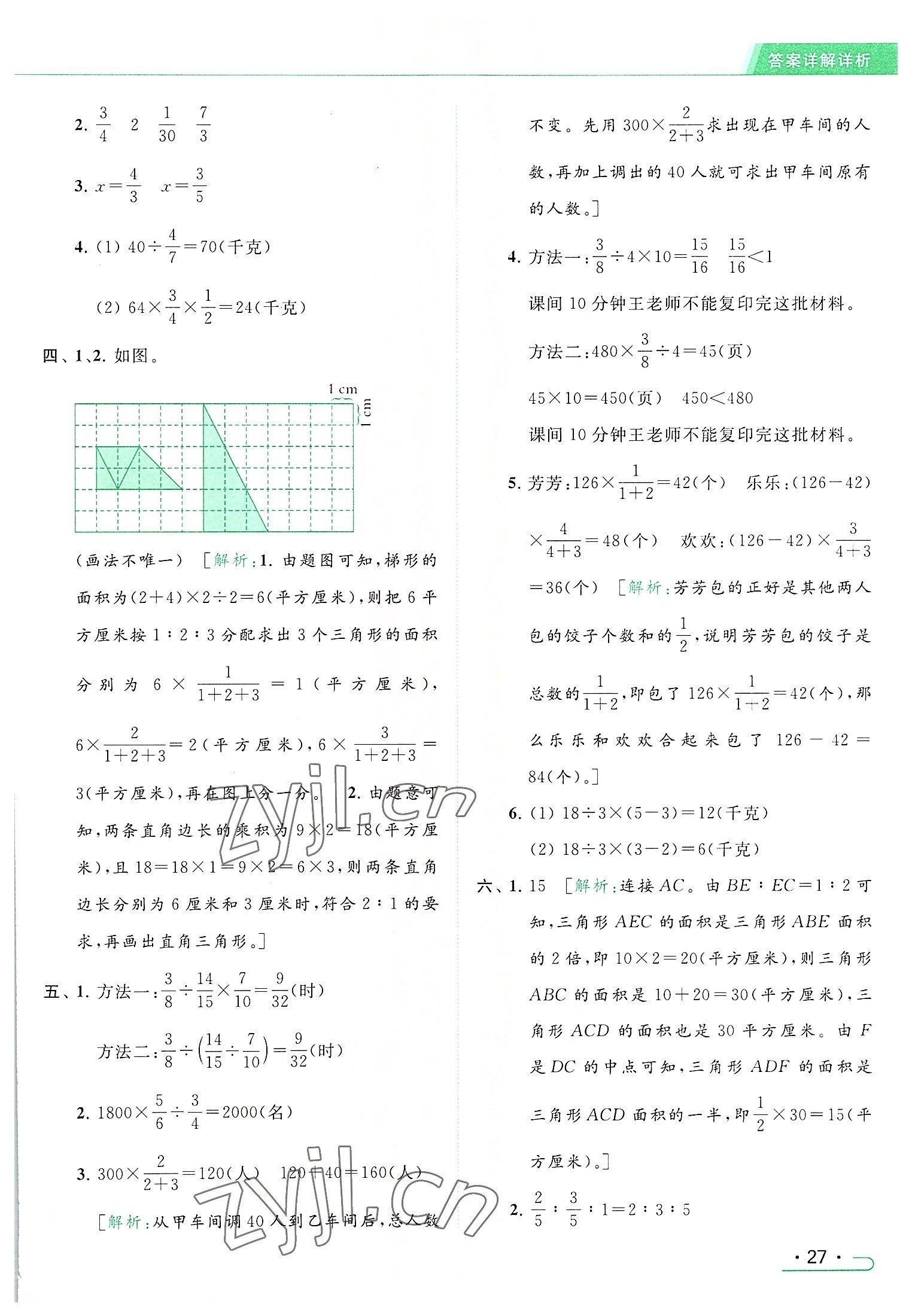 2022年亮点给力提优课时作业本六年级数学上册江苏版参考答案第27页