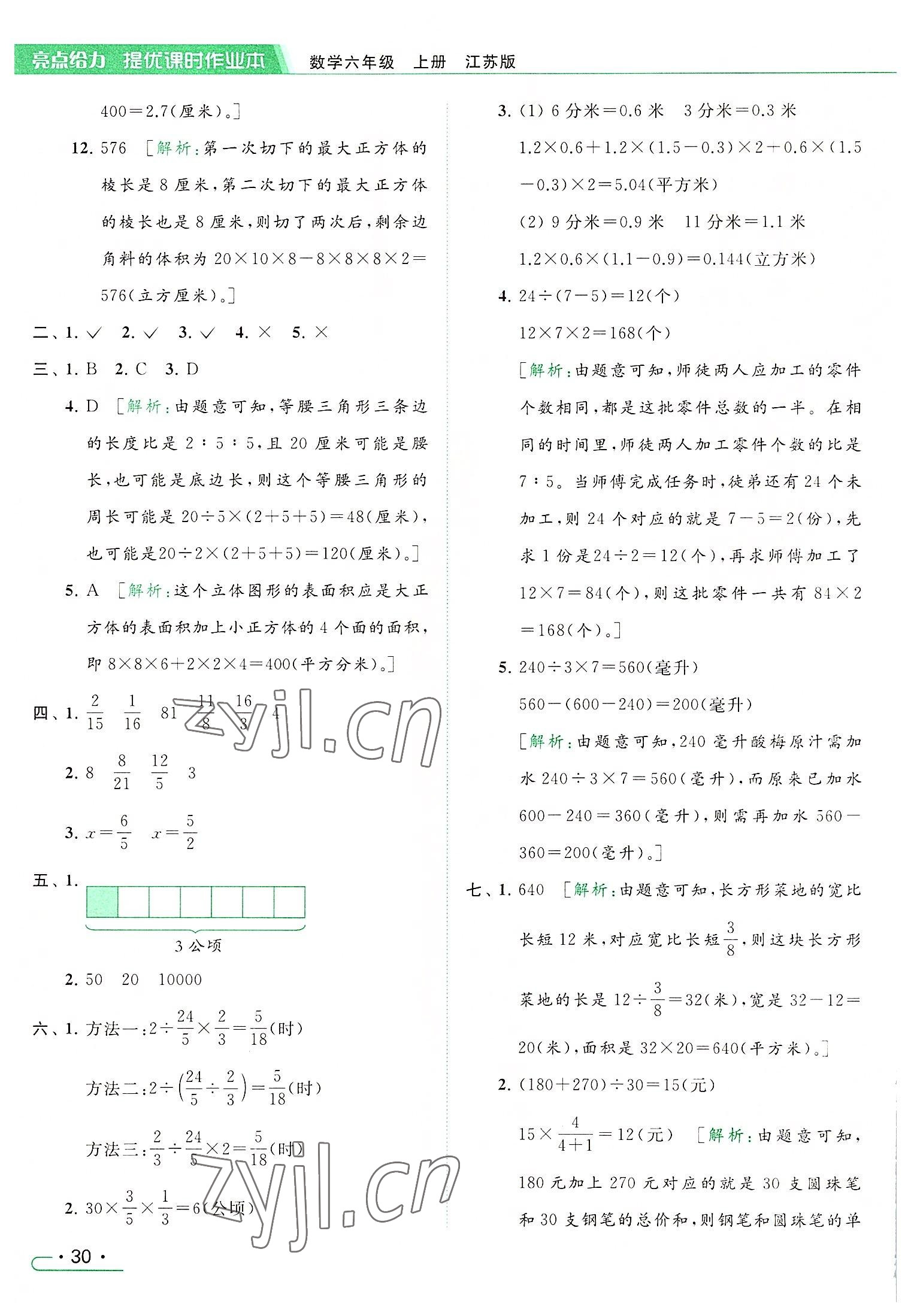 2022年亮点给力提优课时作业本六年级数学上册江苏版参考答案第30页