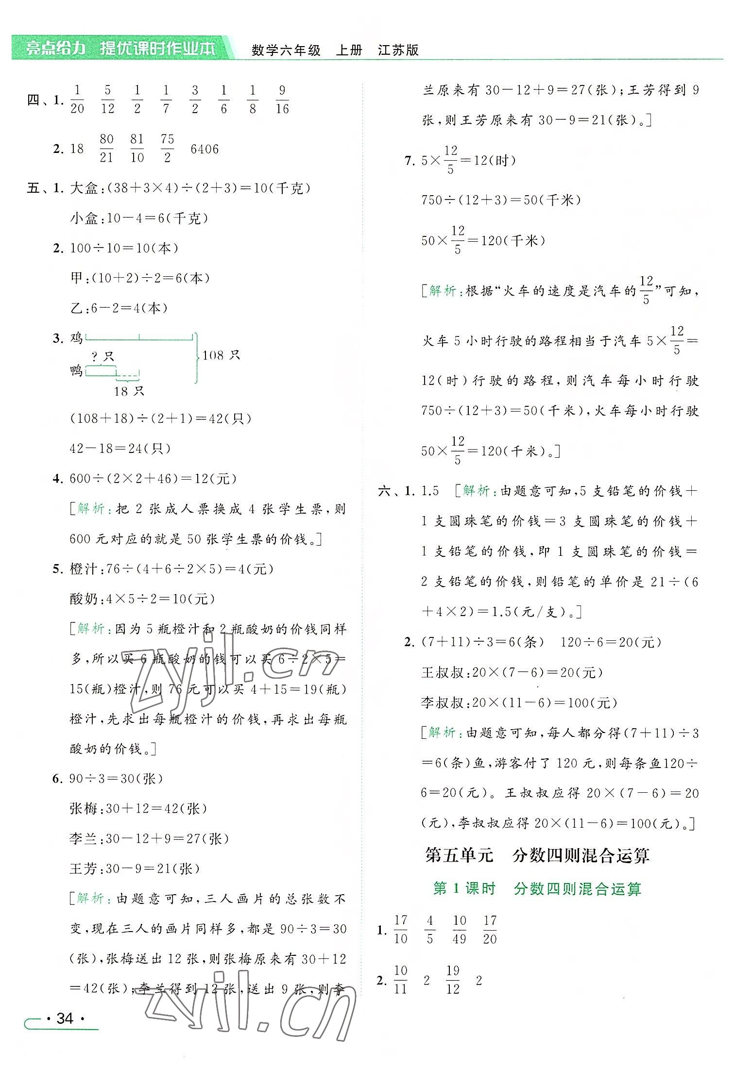 2022年亮点给力提优课时作业本六年级数学上册江苏版参考答案第34页