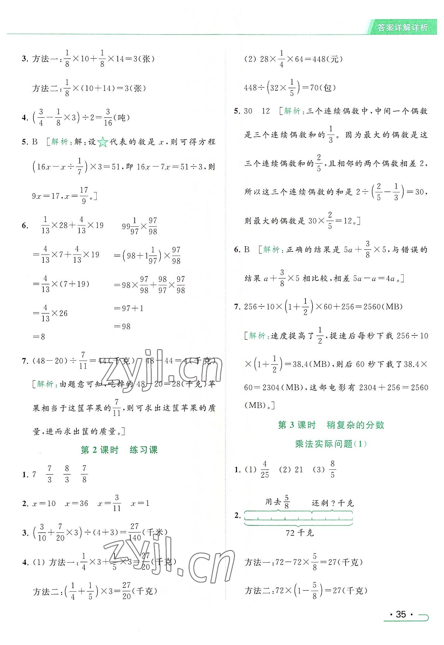 2022年亮点给力提优课时作业本六年级数学上册江苏版参考答案第35页
