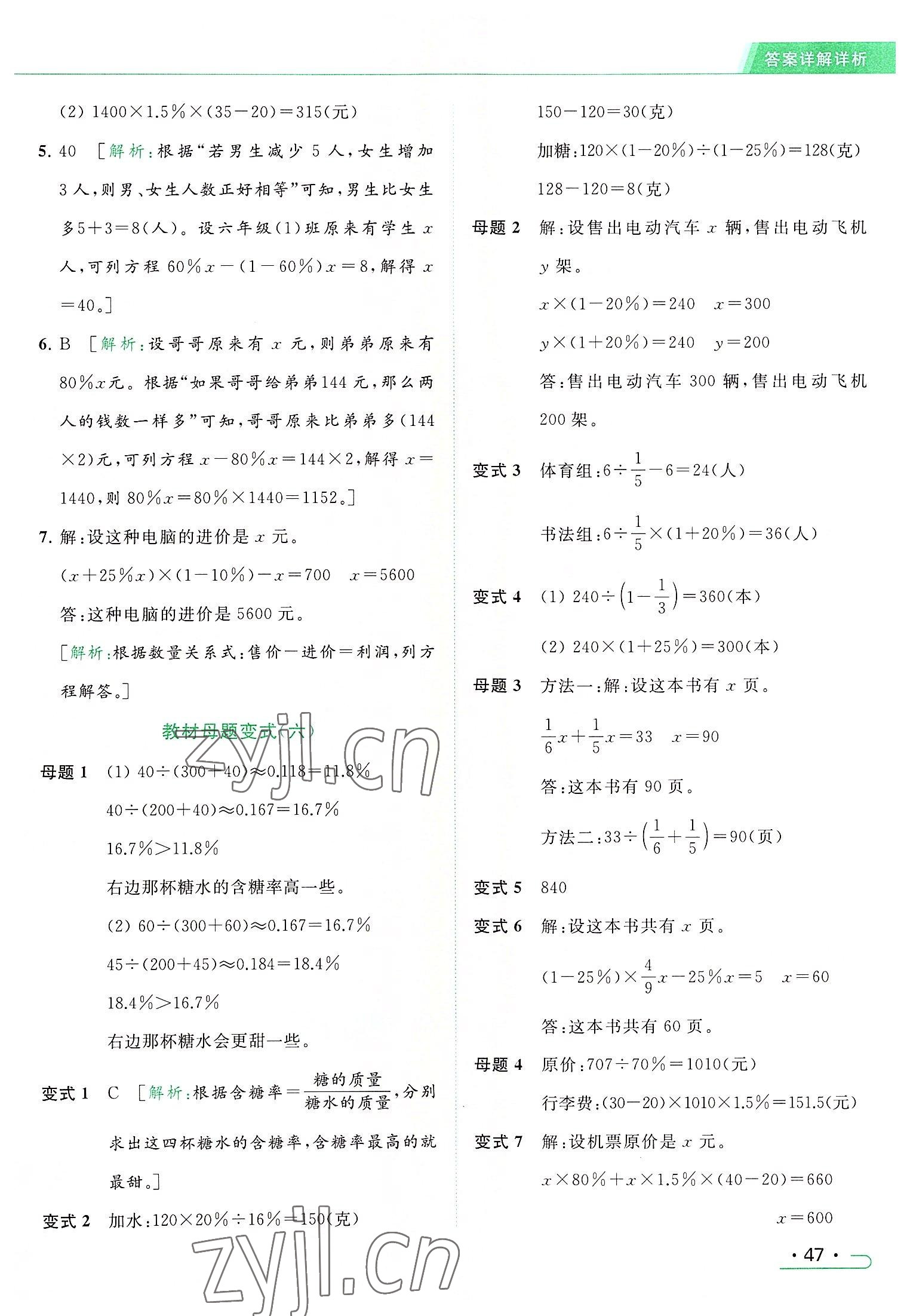 2022年亮点给力提优课时作业本六年级数学上册江苏版参考答案第47页