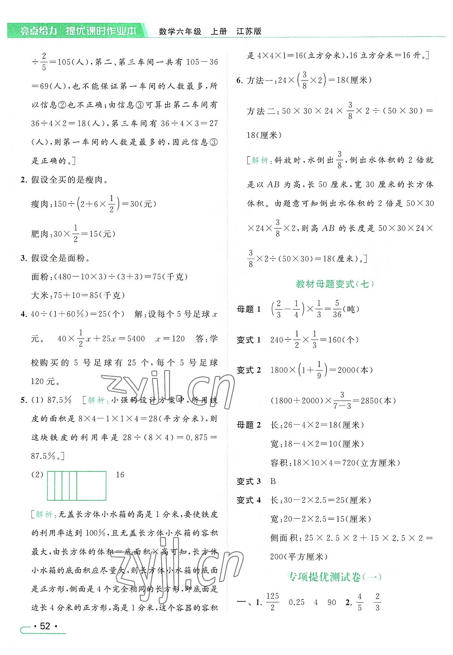 2022年亮点给力提优课时作业本六年级数学上册江苏版参考答案第52页