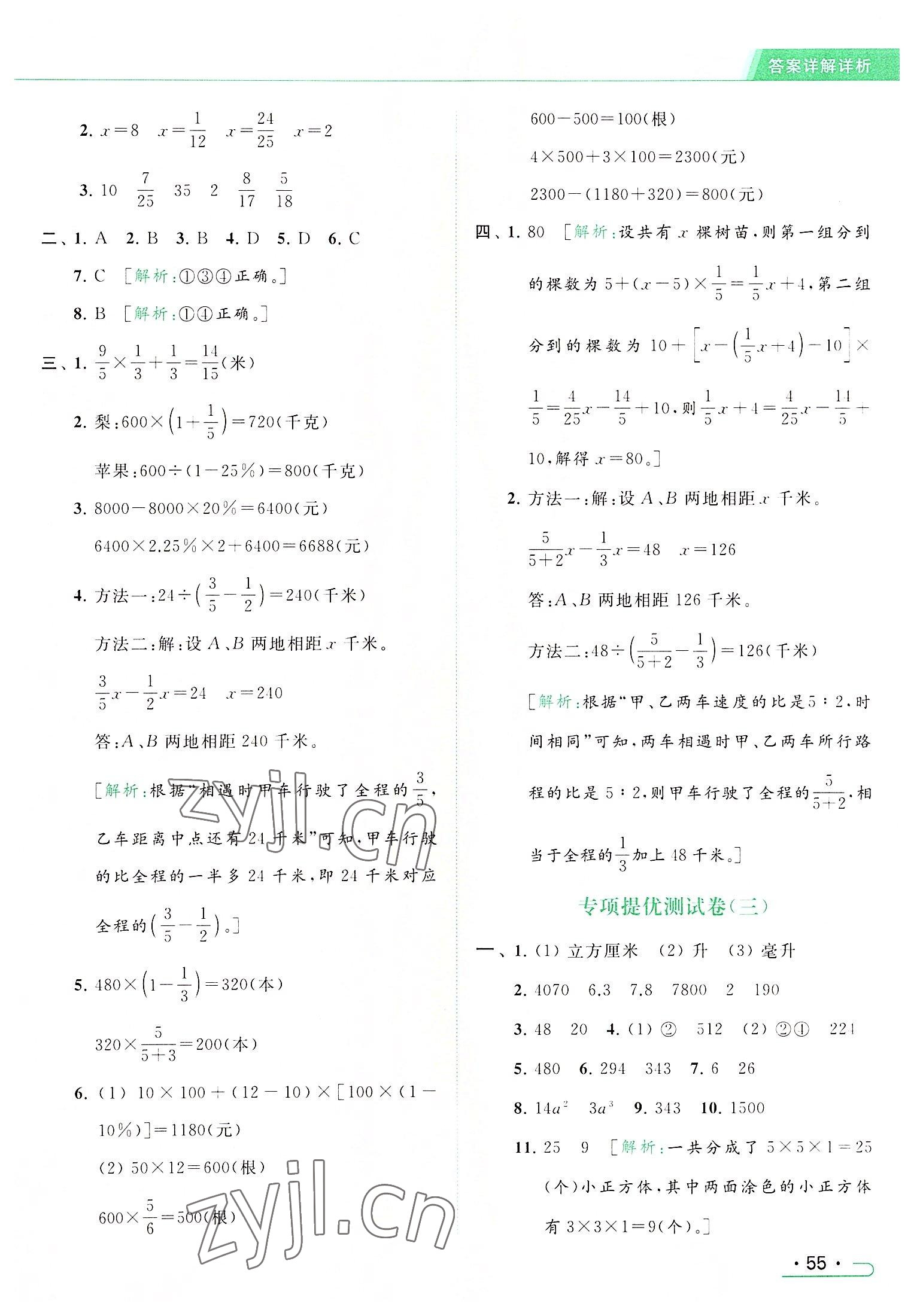 2022年亮点给力提优课时作业本六年级数学上册江苏版参考答案第55页