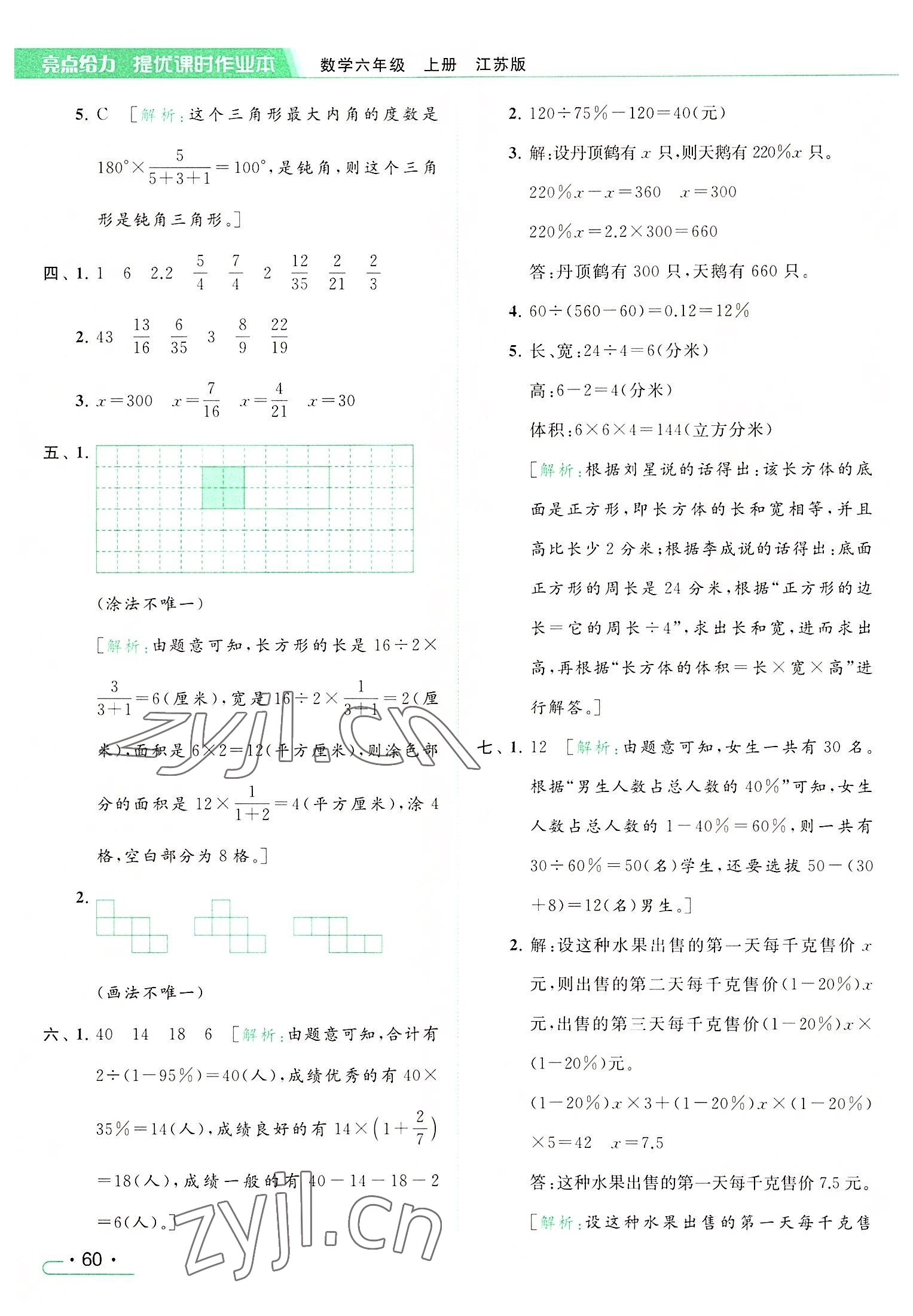 2022年亮点给力提优课时作业本六年级数学上册江苏版参考答案第60页