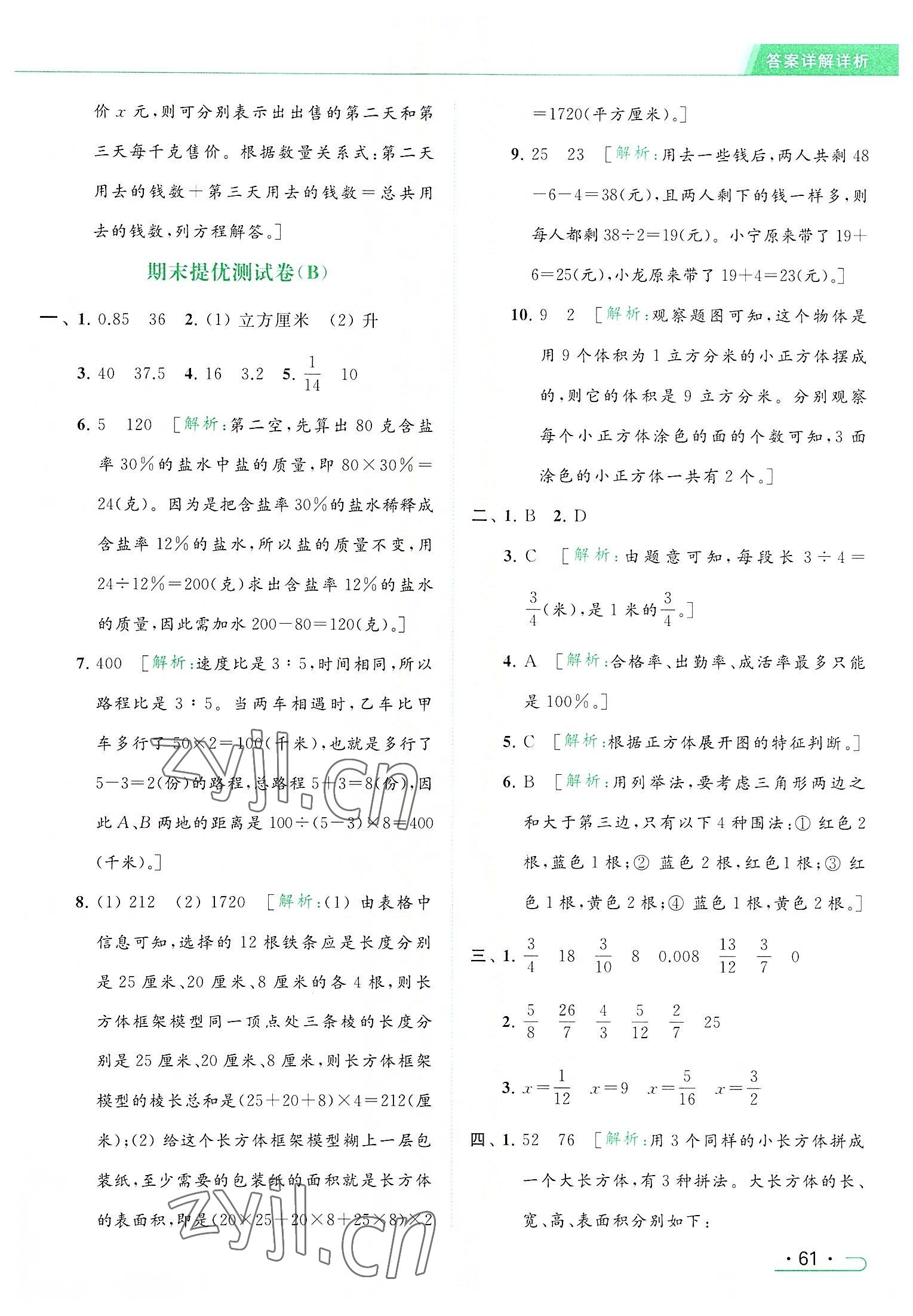 2022年亮点给力提优课时作业本六年级数学上册江苏版参考答案第61页