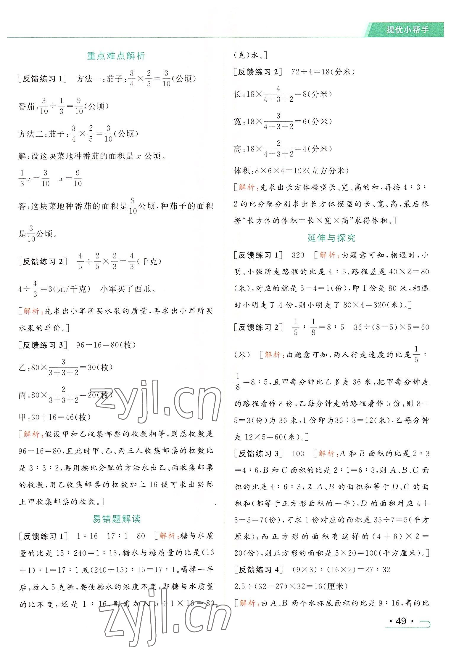 2022年亮点给力提优课时作业本六年级数学上册江苏版参考答案第67页