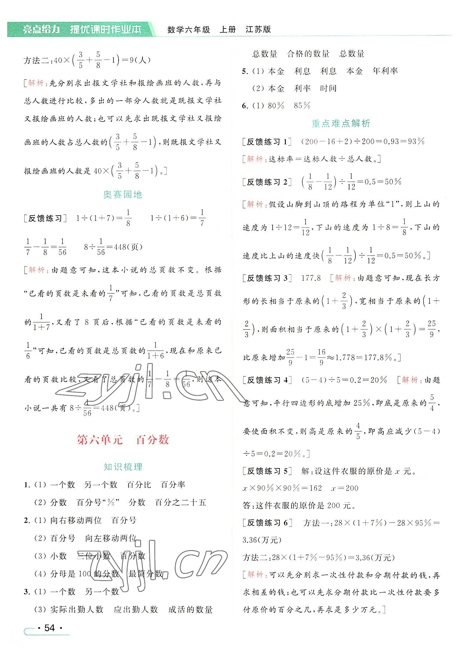 2022年亮点给力提优课时作业本六年级数学上册江苏版参考答案第72页