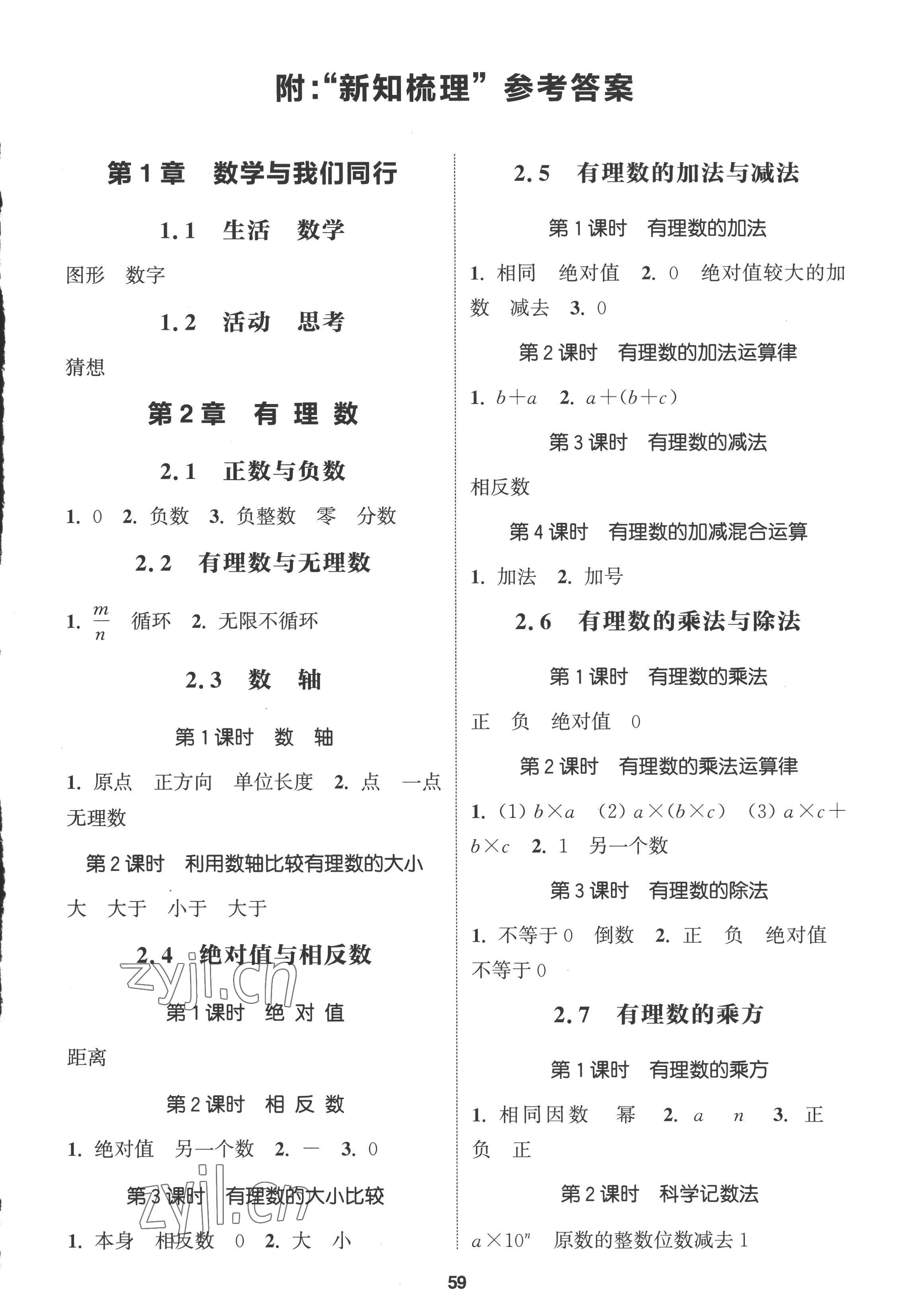 2022年通城学典课时作业本七年级数学上册苏科版江苏专版参考答案第37页
