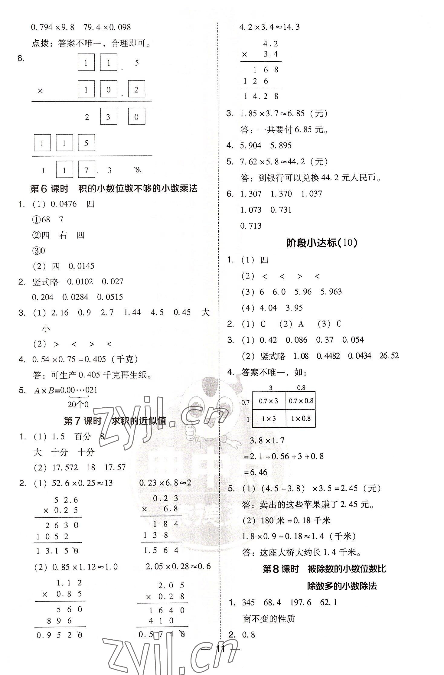 2022年综合应用创新题典中点五年级数学上册苏教版参考答案第11页