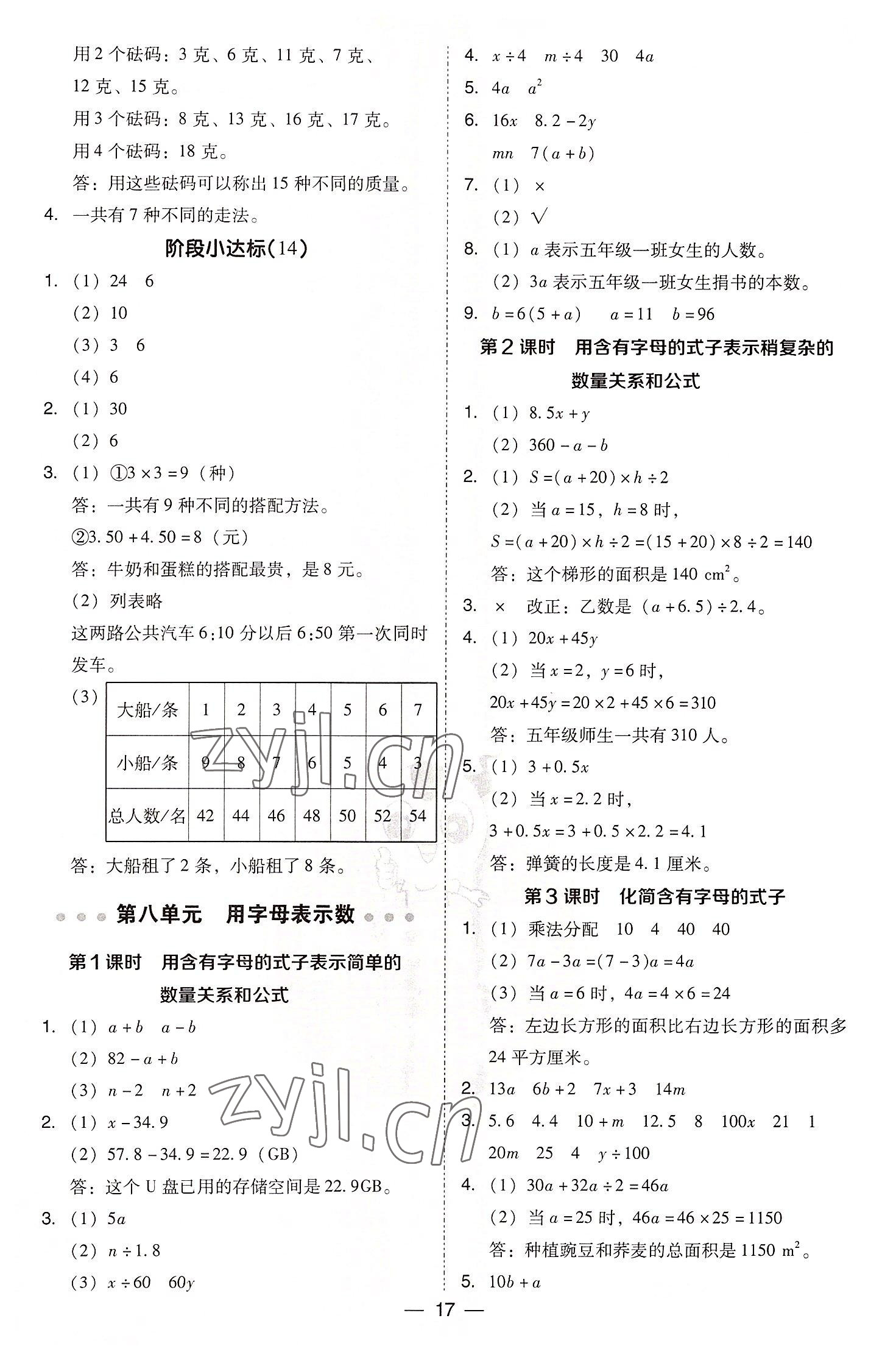 2022年综合应用创新题典中点五年级数学上册苏教版参考答案第17页