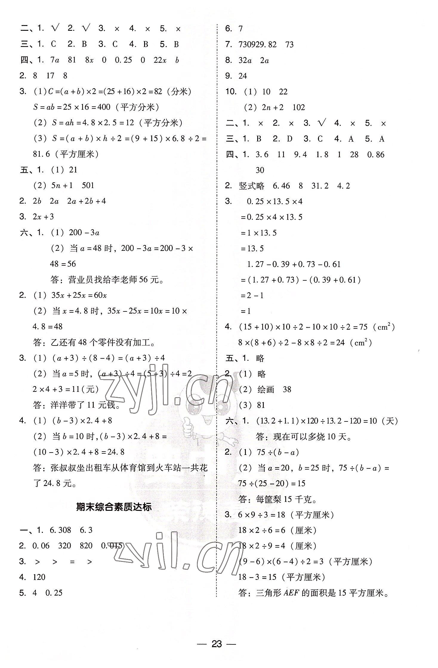 2022年综合应用创新题典中点五年级数学上册苏教版参考答案第23页