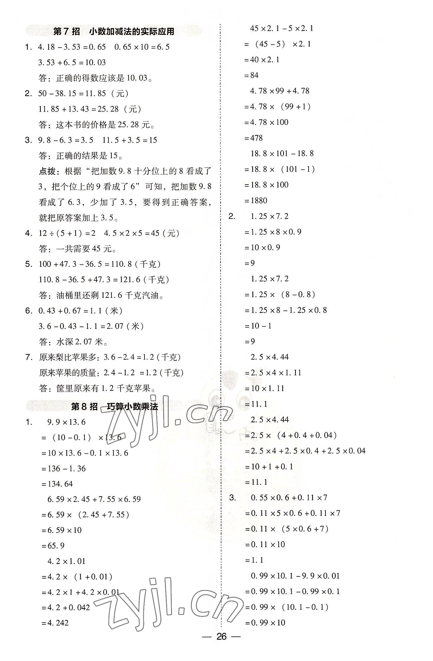 2022年综合应用创新题典中点五年级数学上册苏教版参考答案第26页