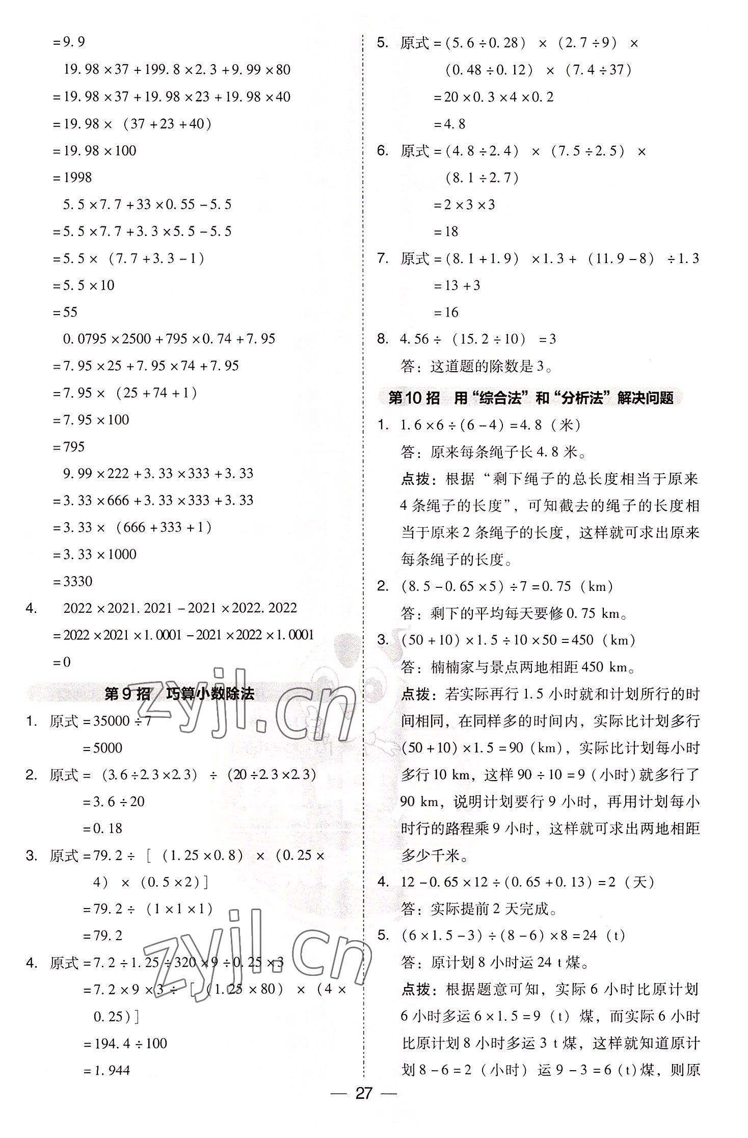 2022年综合应用创新题典中点五年级数学上册苏教版参考答案第27页