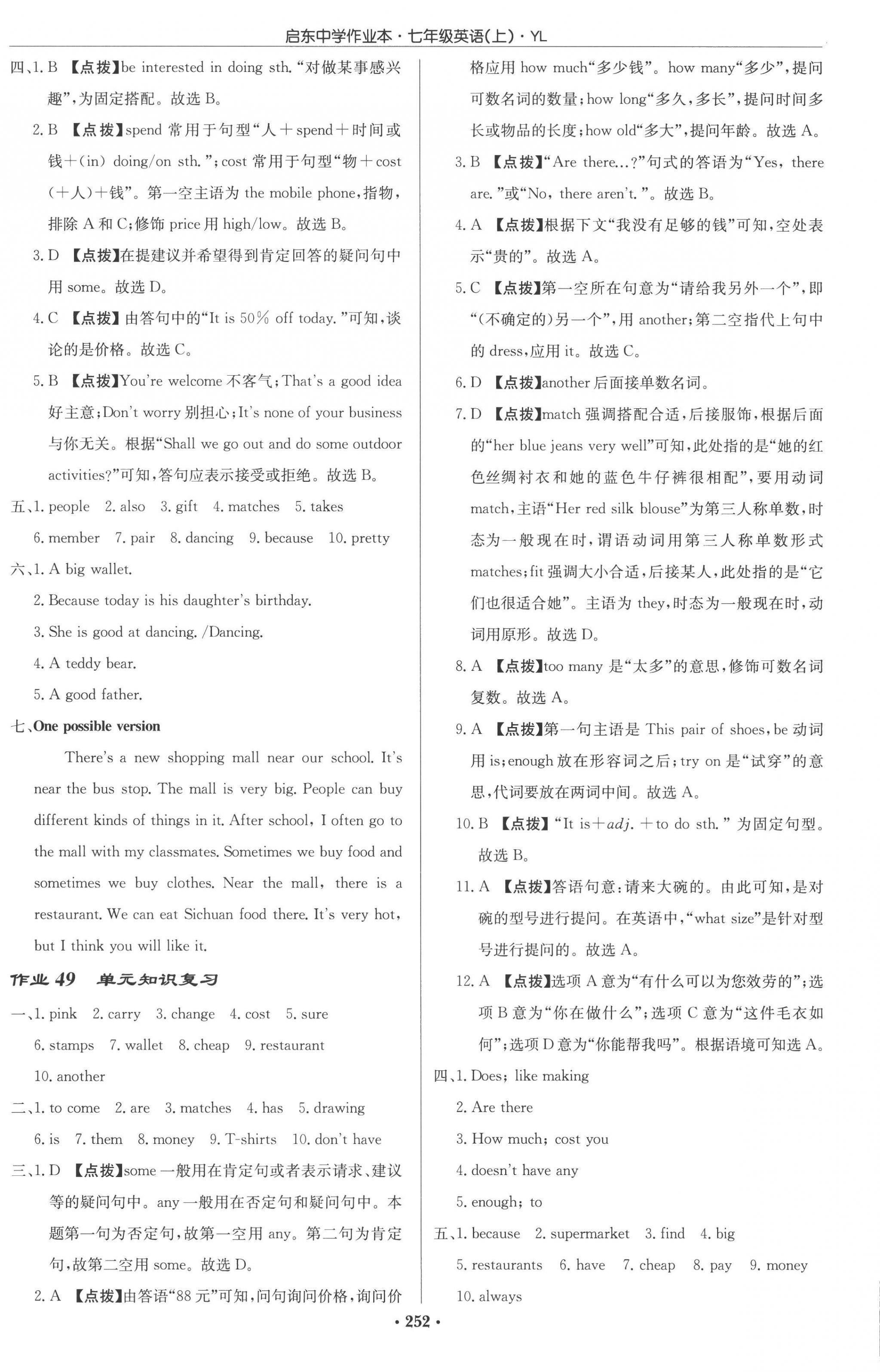 2022年启东中学作业本七年级英语上册译林版参考答案第20页