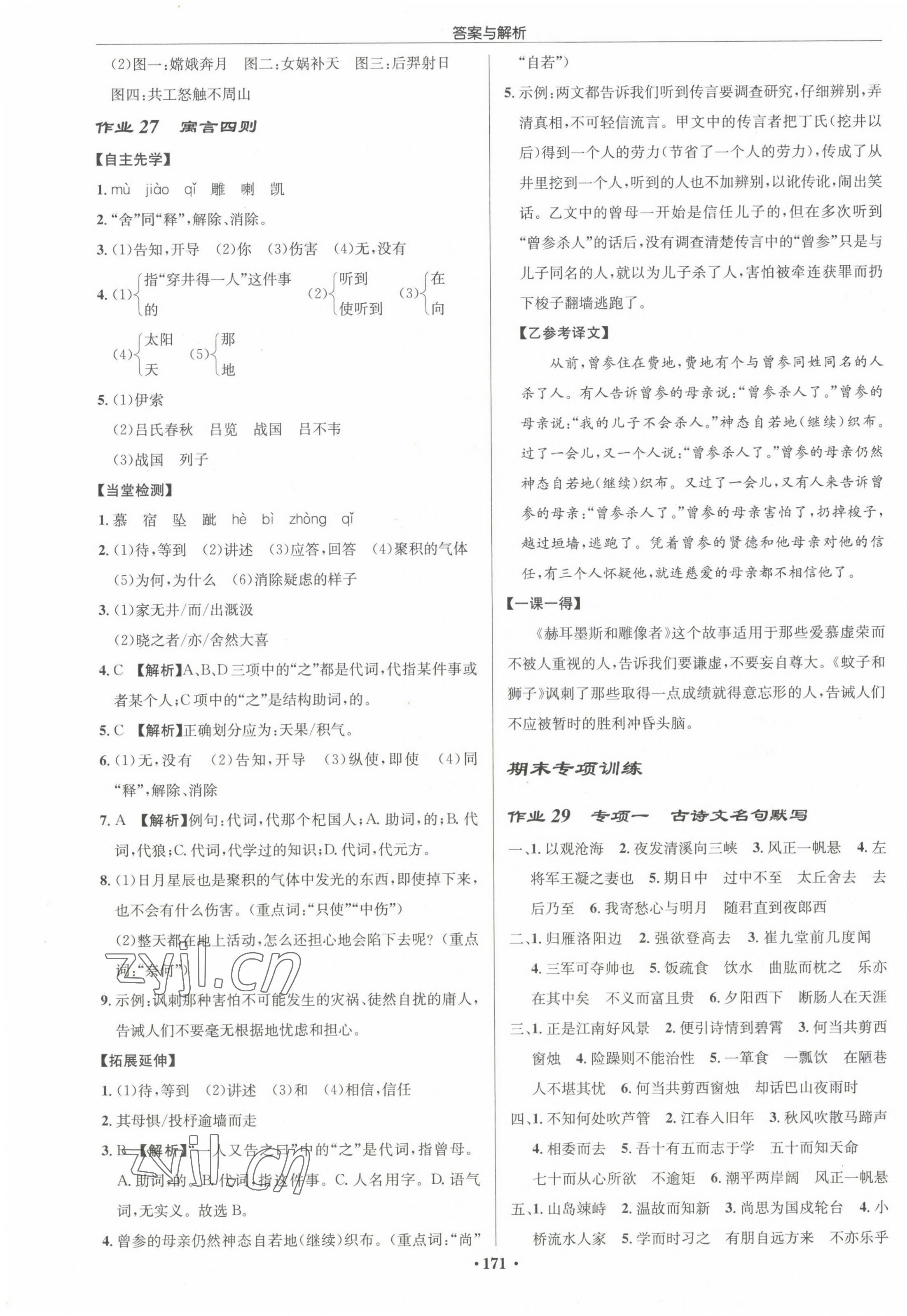 2022年启东中学作业本七年级语文上册人教版参考答案第15页
