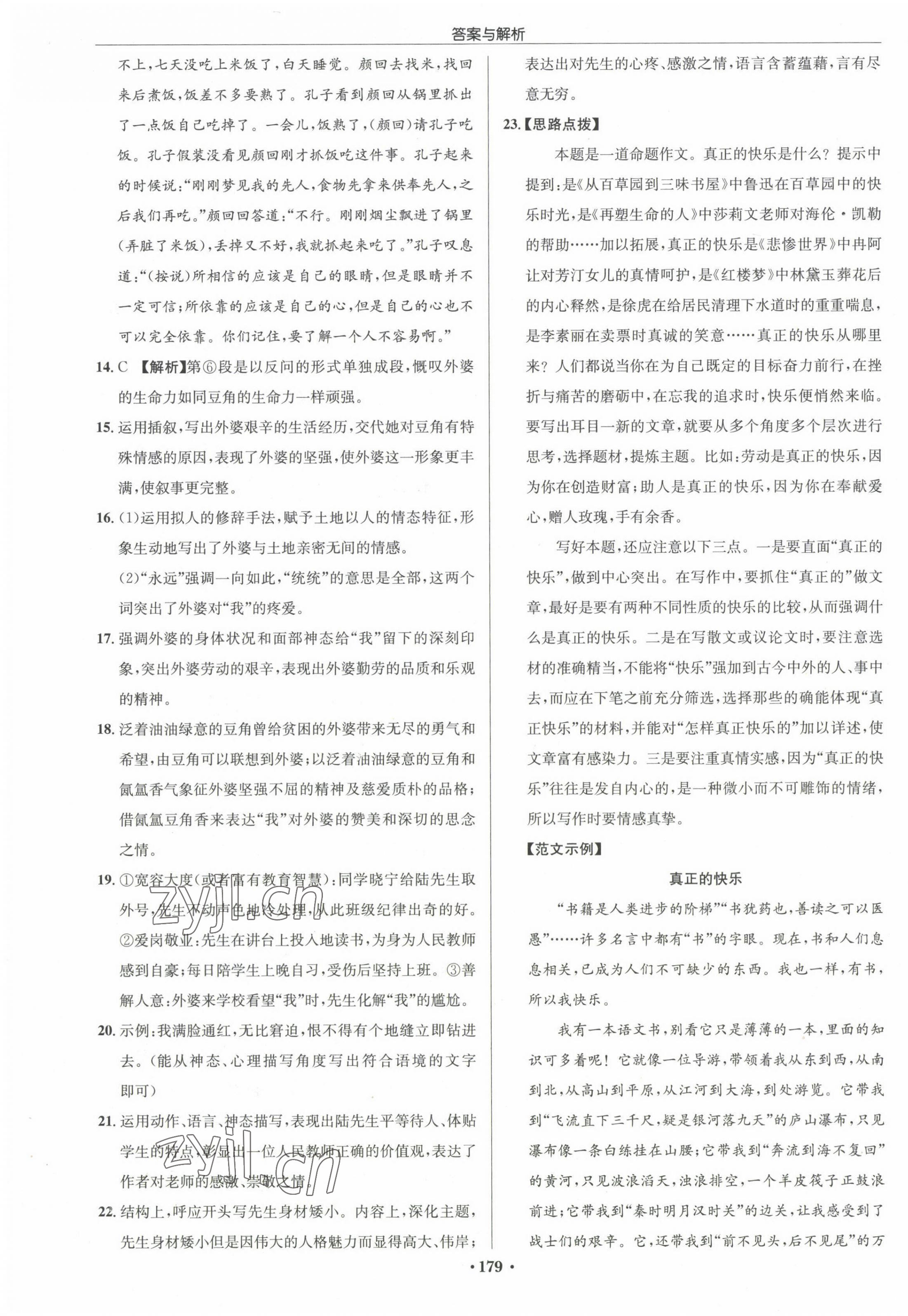 2022年启东中学作业本七年级语文上册人教版参考答案第23页