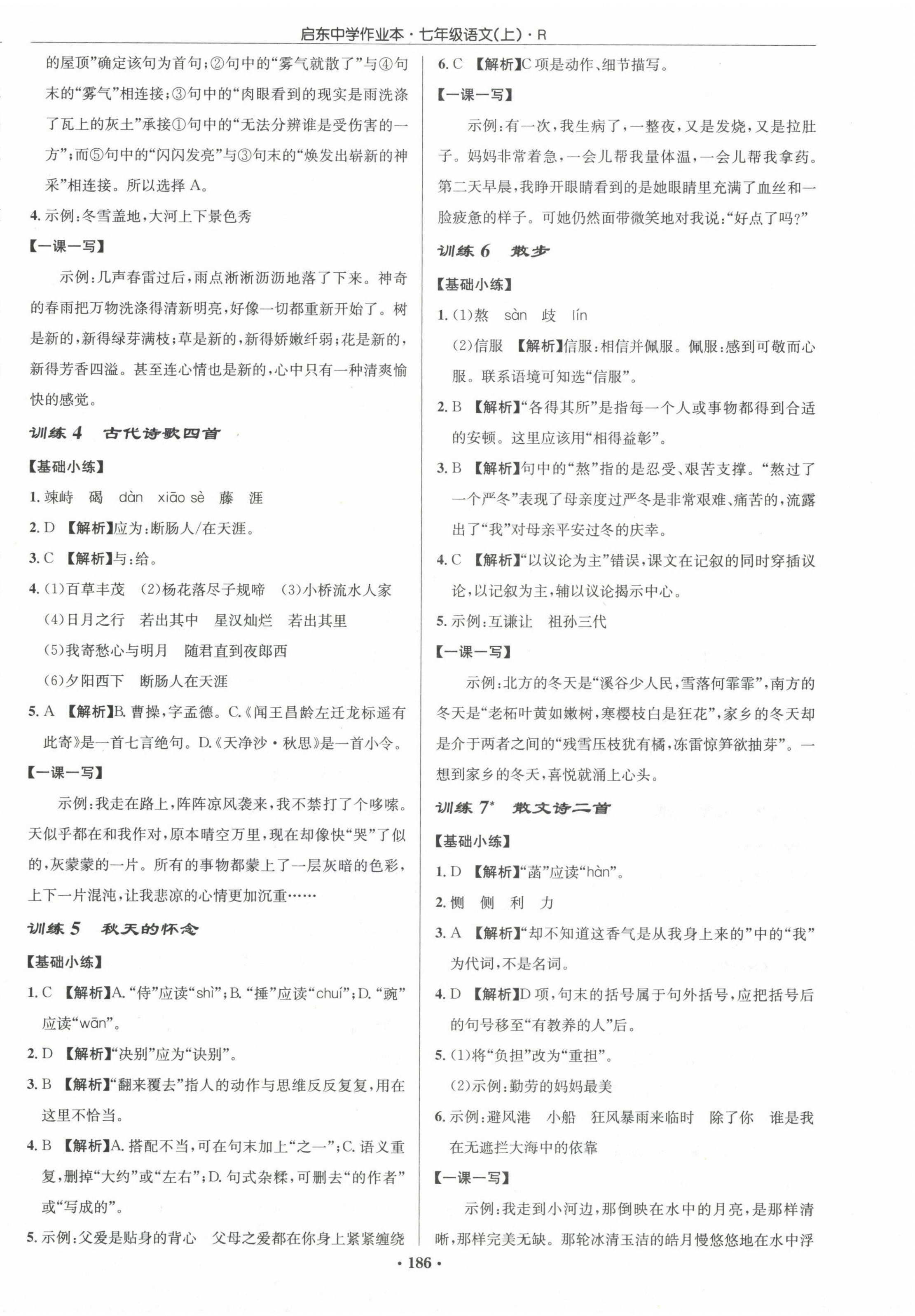 2022年启东中学作业本七年级语文上册人教版参考答案第30页