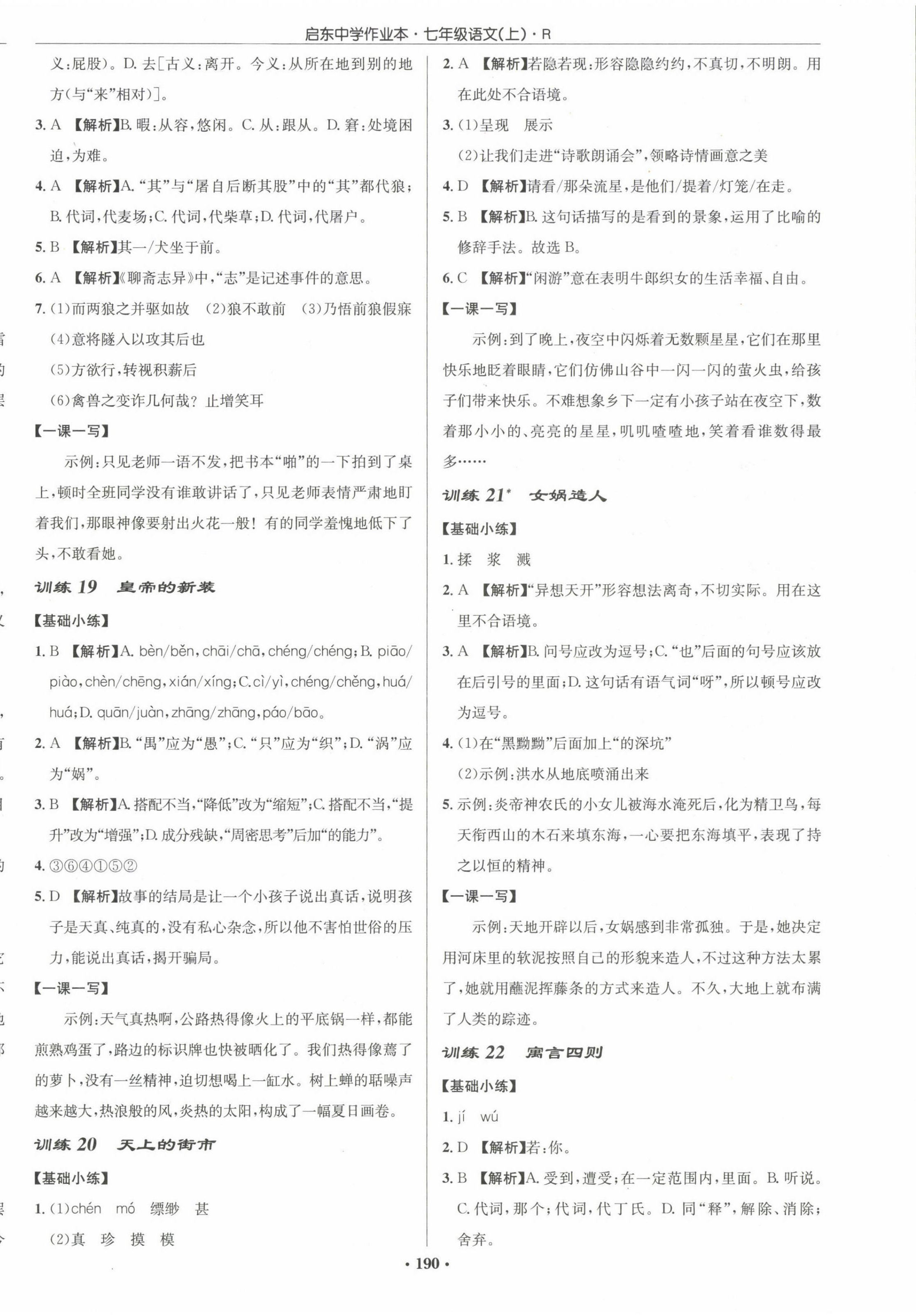 2022年启东中学作业本七年级语文上册人教版参考答案第34页