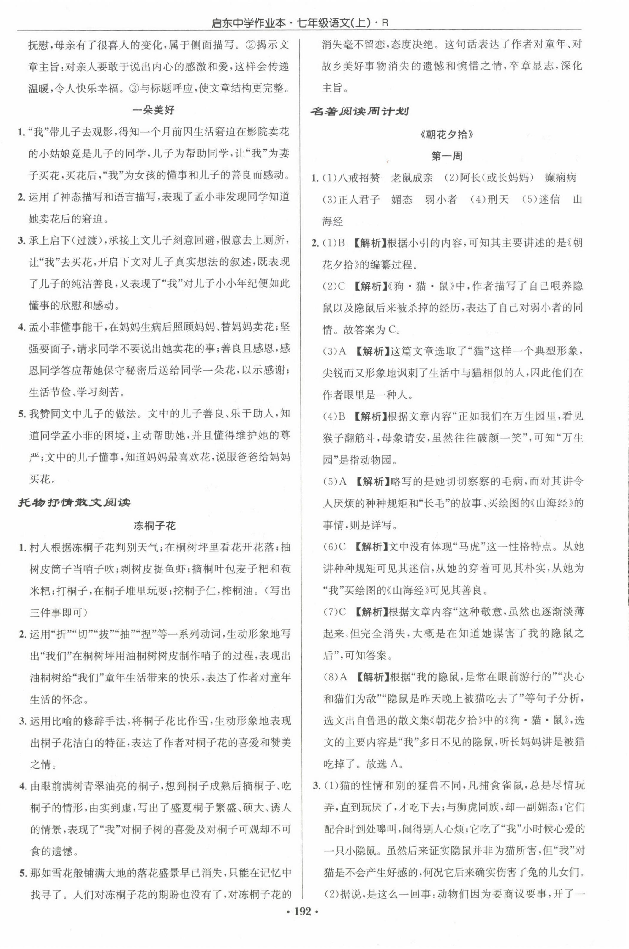 2022年启东中学作业本七年级语文上册人教版参考答案第36页