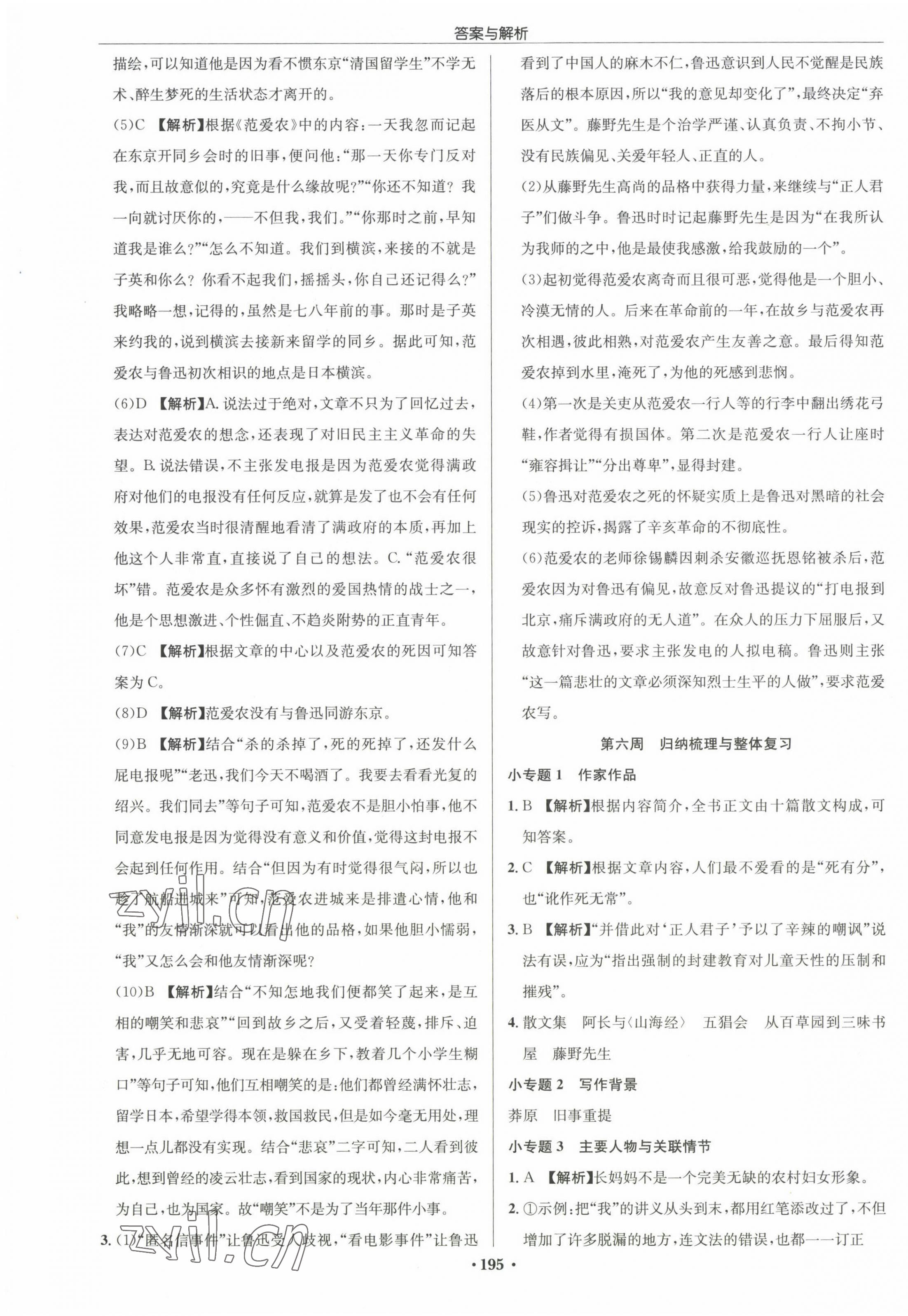2022年启东中学作业本七年级语文上册人教版参考答案第39页