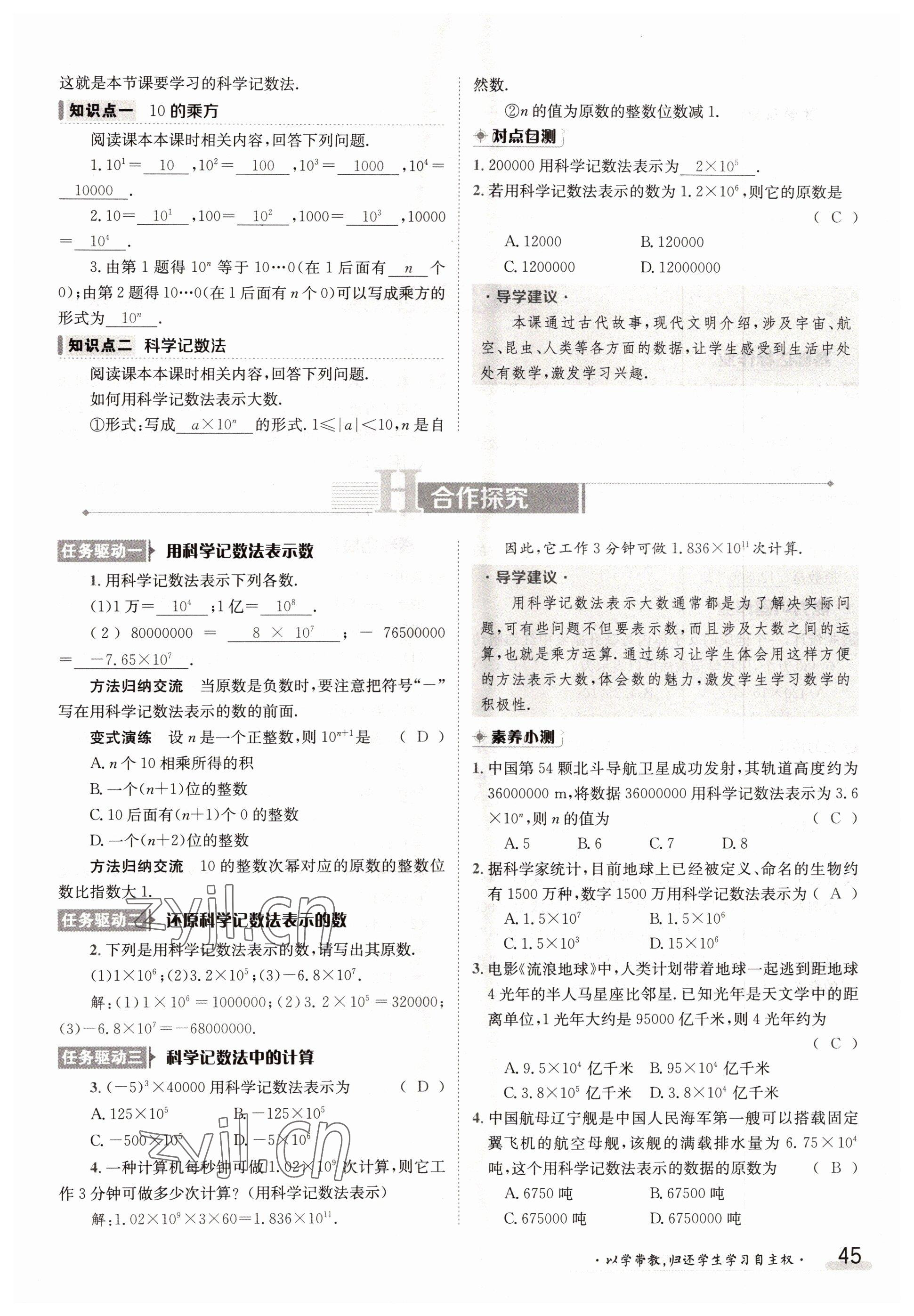 2022年金太阳导学案七年级数学上册人教版参考答案第45页
