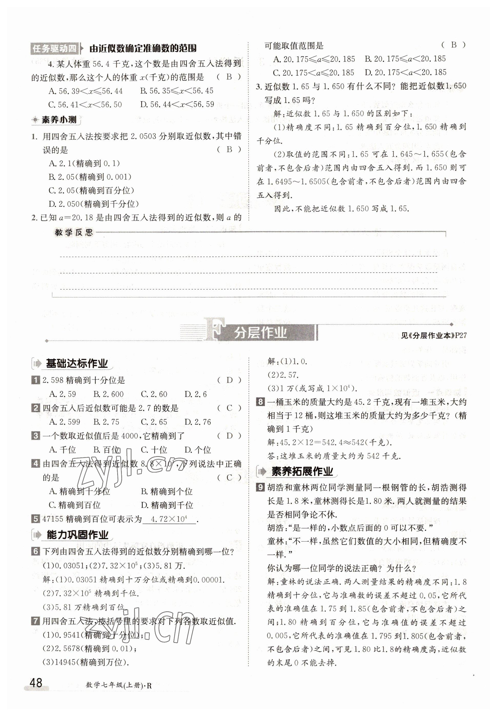 2022年金太阳导学案七年级数学上册人教版参考答案第48页