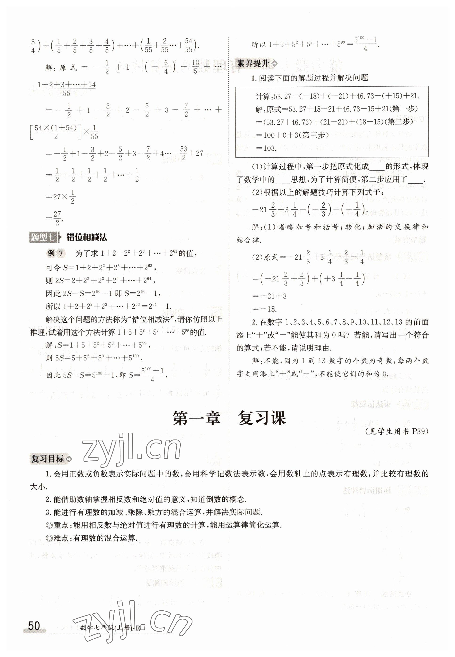 2022年金太阳导学案七年级数学上册人教版参考答案第50页