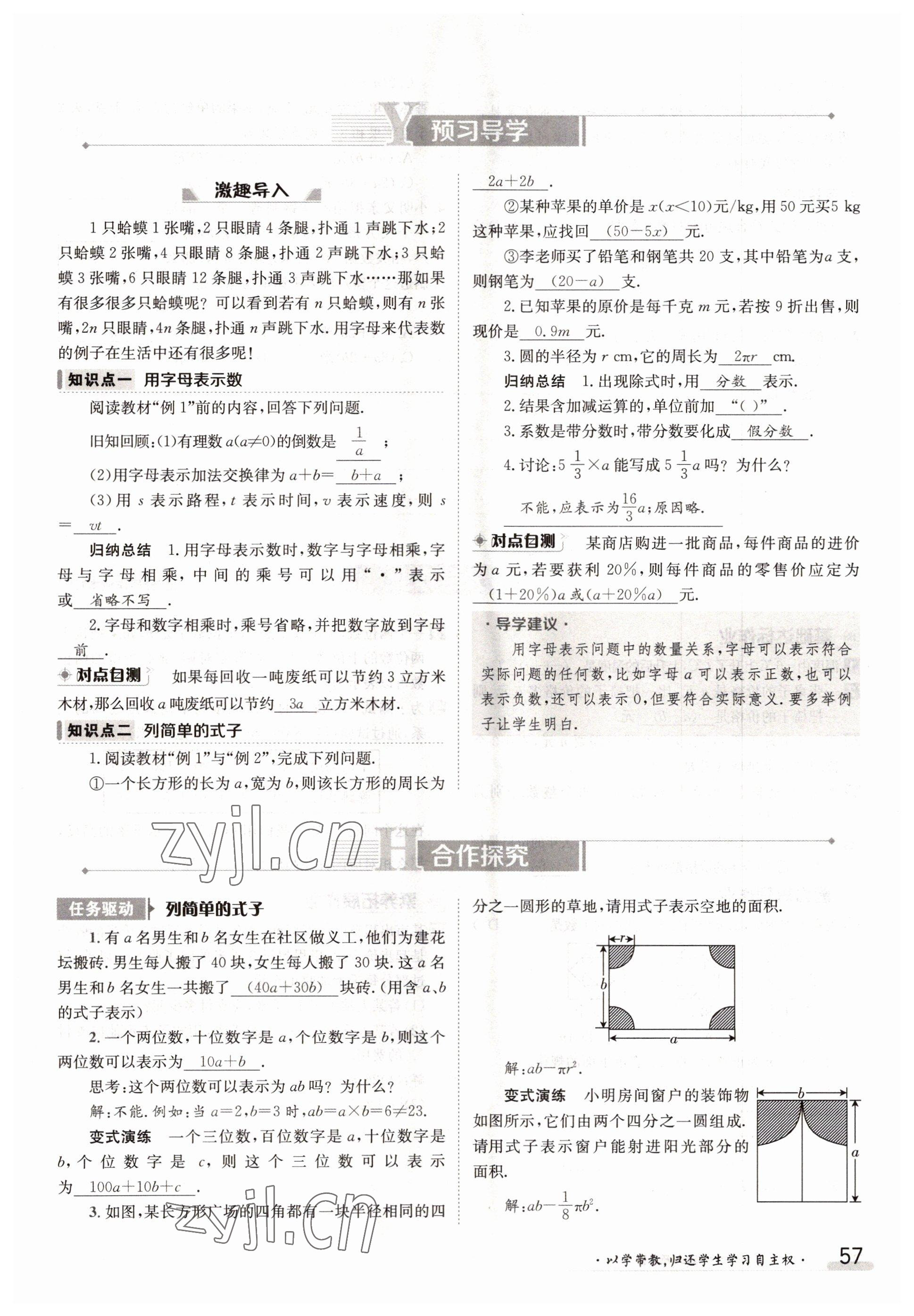 2022年金太阳导学案七年级数学上册人教版参考答案第57页