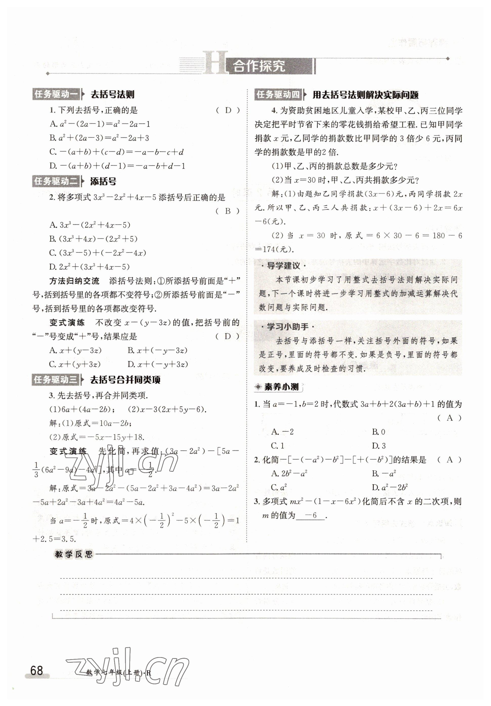 2022年金太阳导学案七年级数学上册人教版参考答案第68页