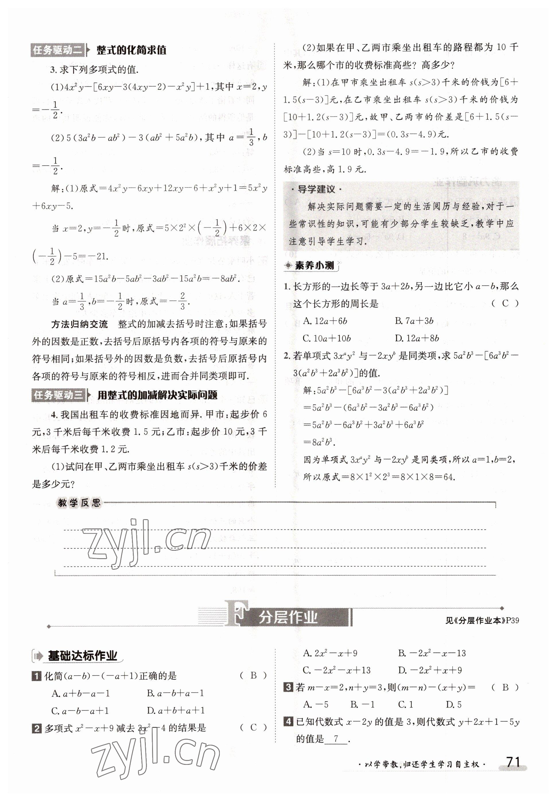 2022年金太阳导学案七年级数学上册人教版参考答案第71页