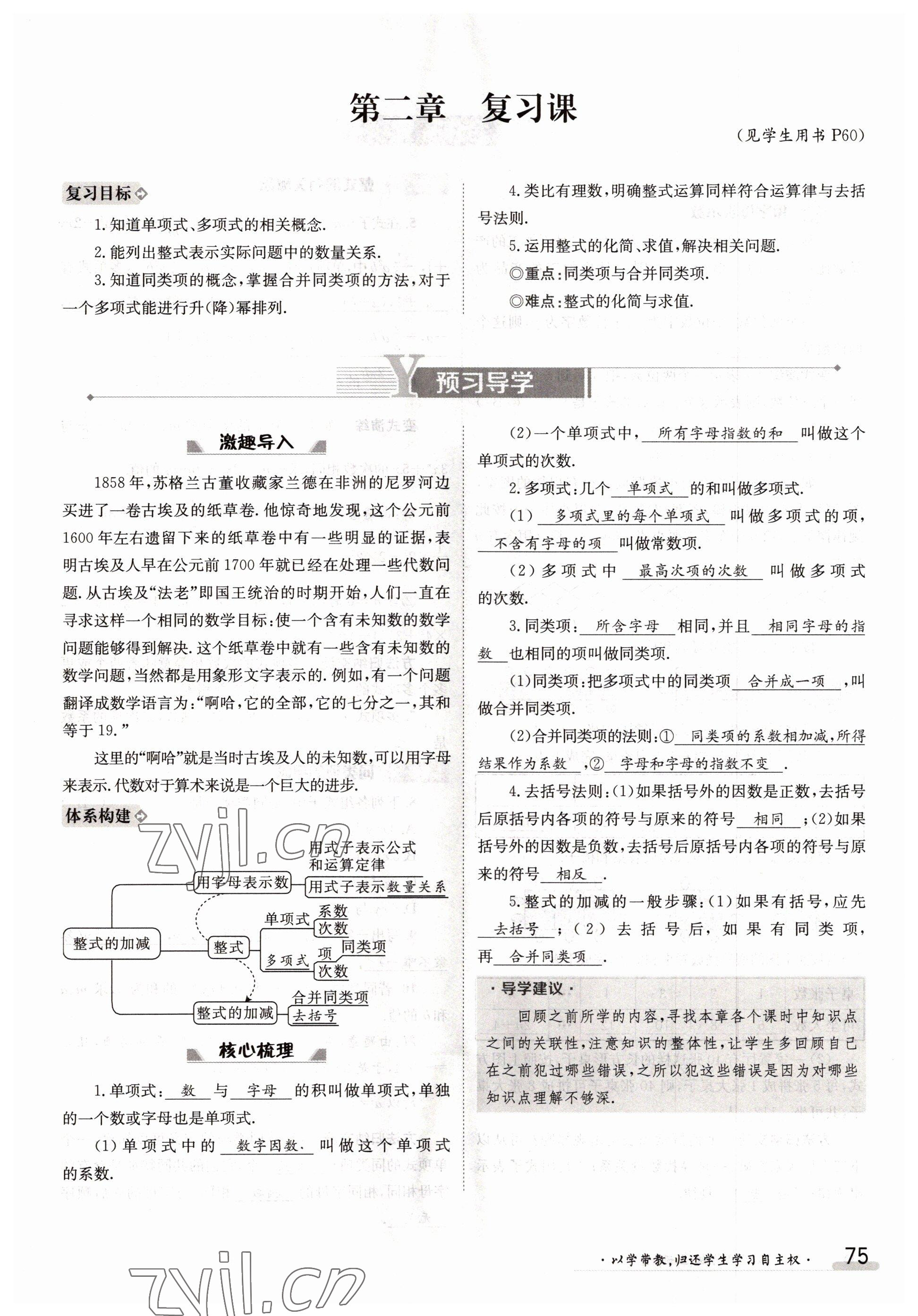 2022年金太阳导学案七年级数学上册人教版参考答案第75页
