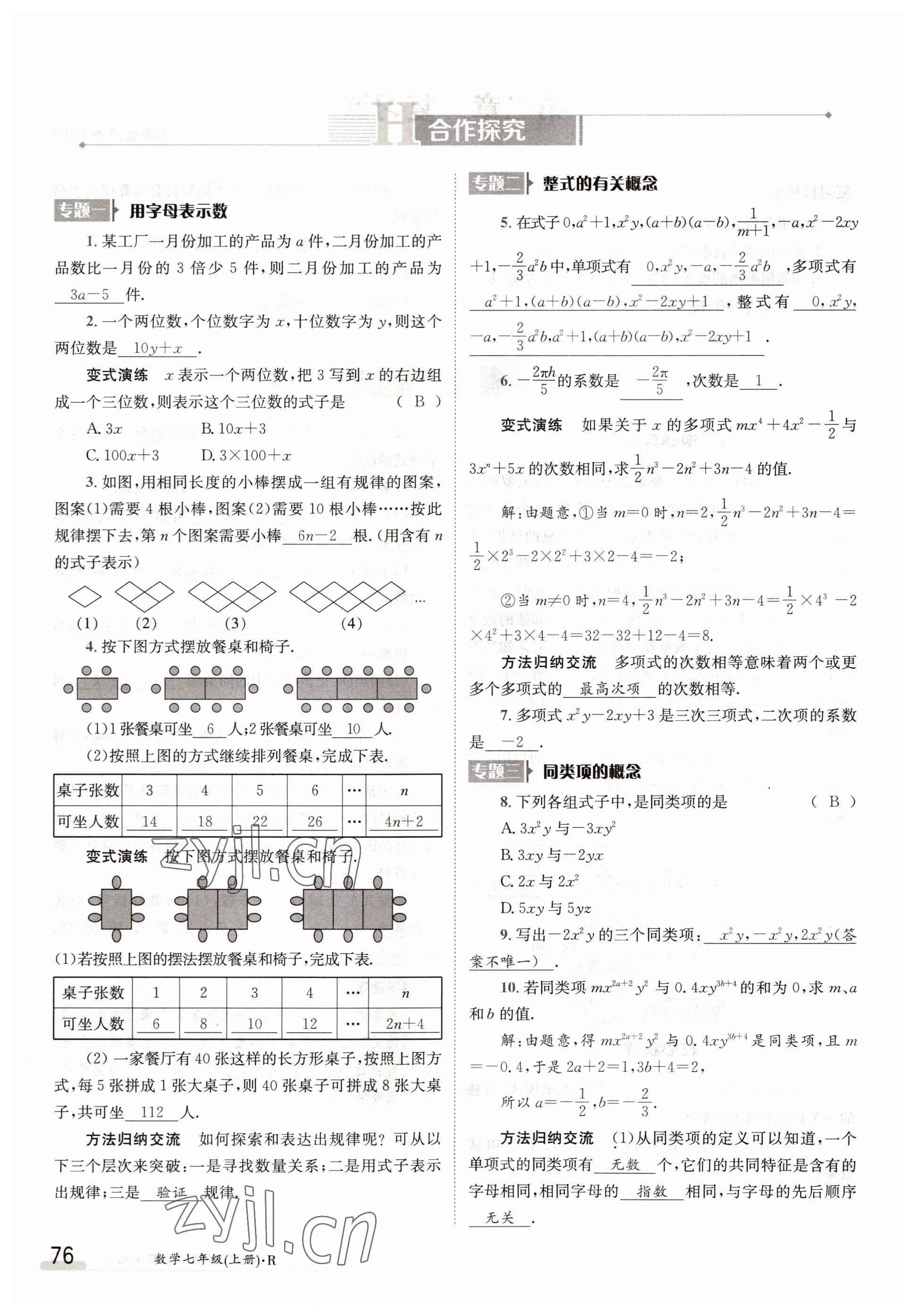 2022年金太阳导学案七年级数学上册人教版参考答案第76页