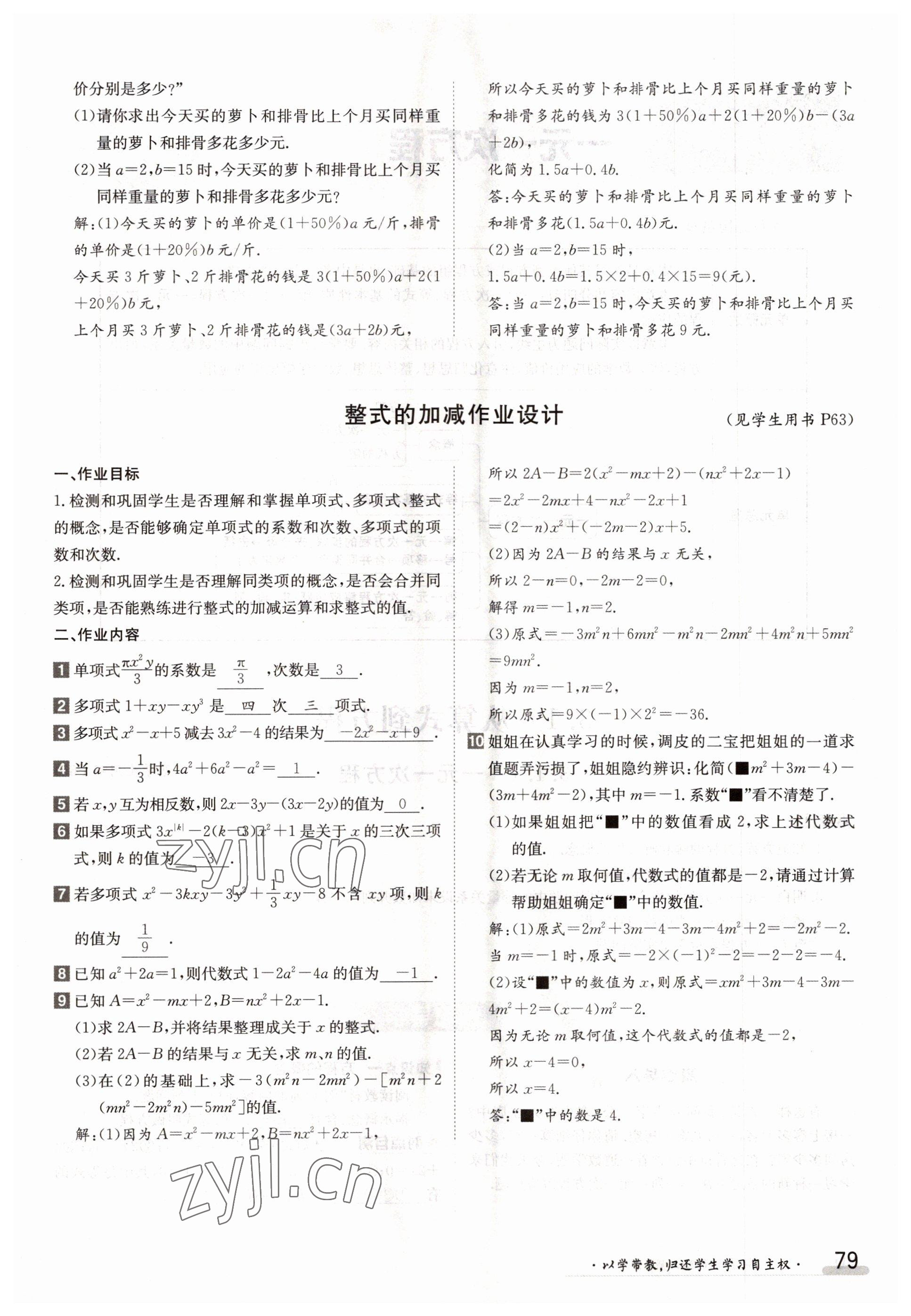 2022年金太阳导学案七年级数学上册人教版参考答案第79页