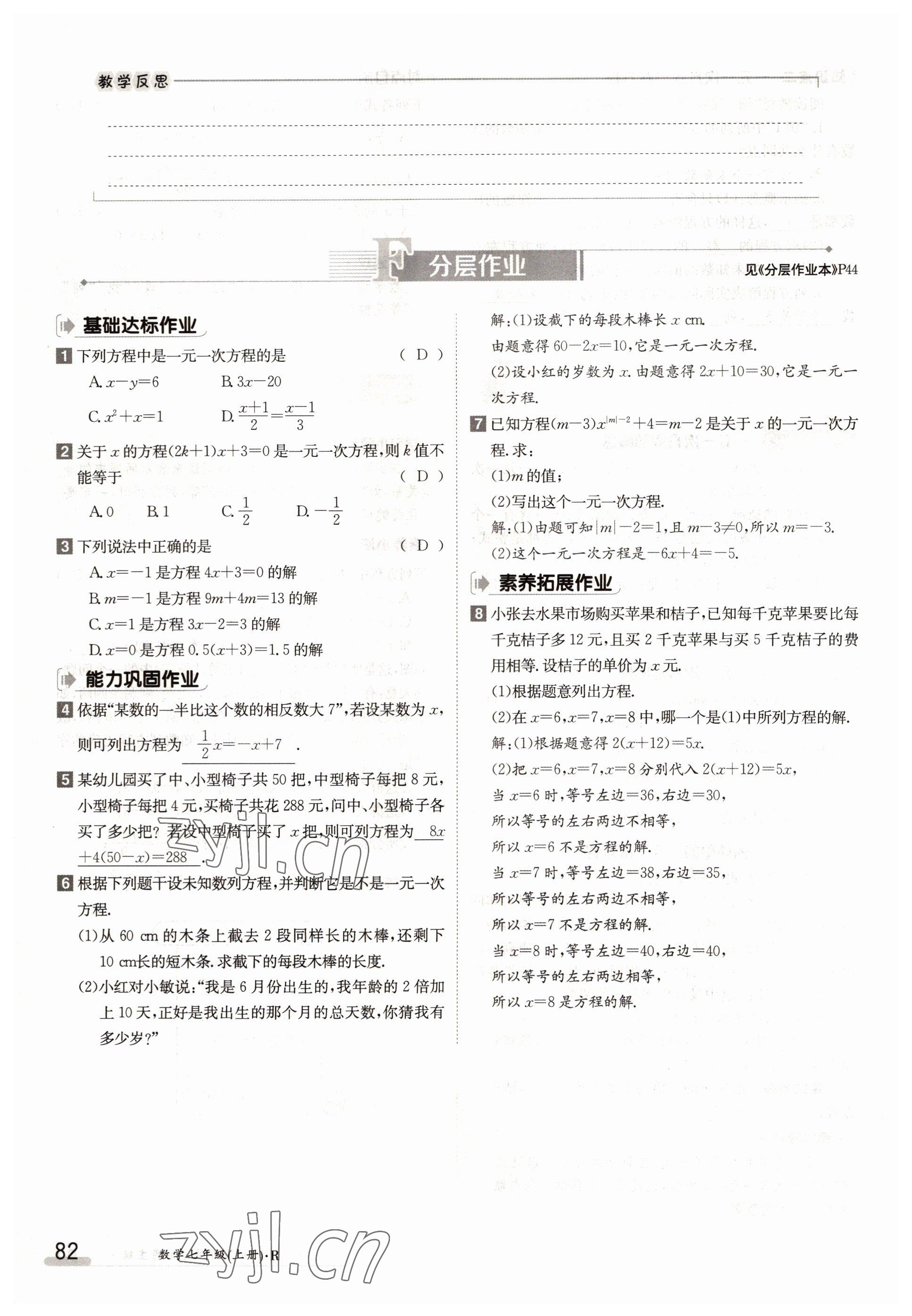2022年金太阳导学案七年级数学上册人教版参考答案第82页