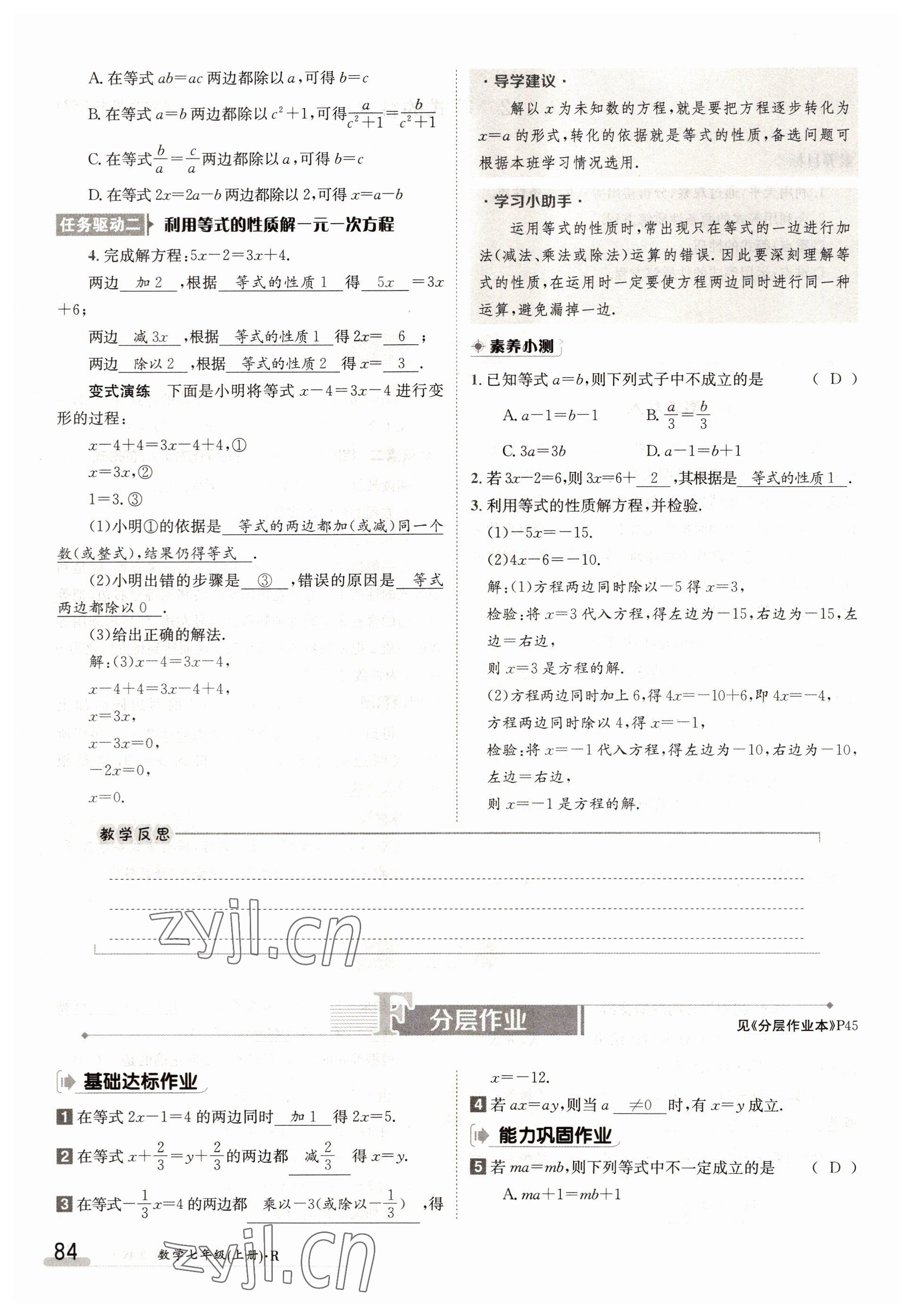 2022年金太阳导学案七年级数学上册人教版参考答案第84页