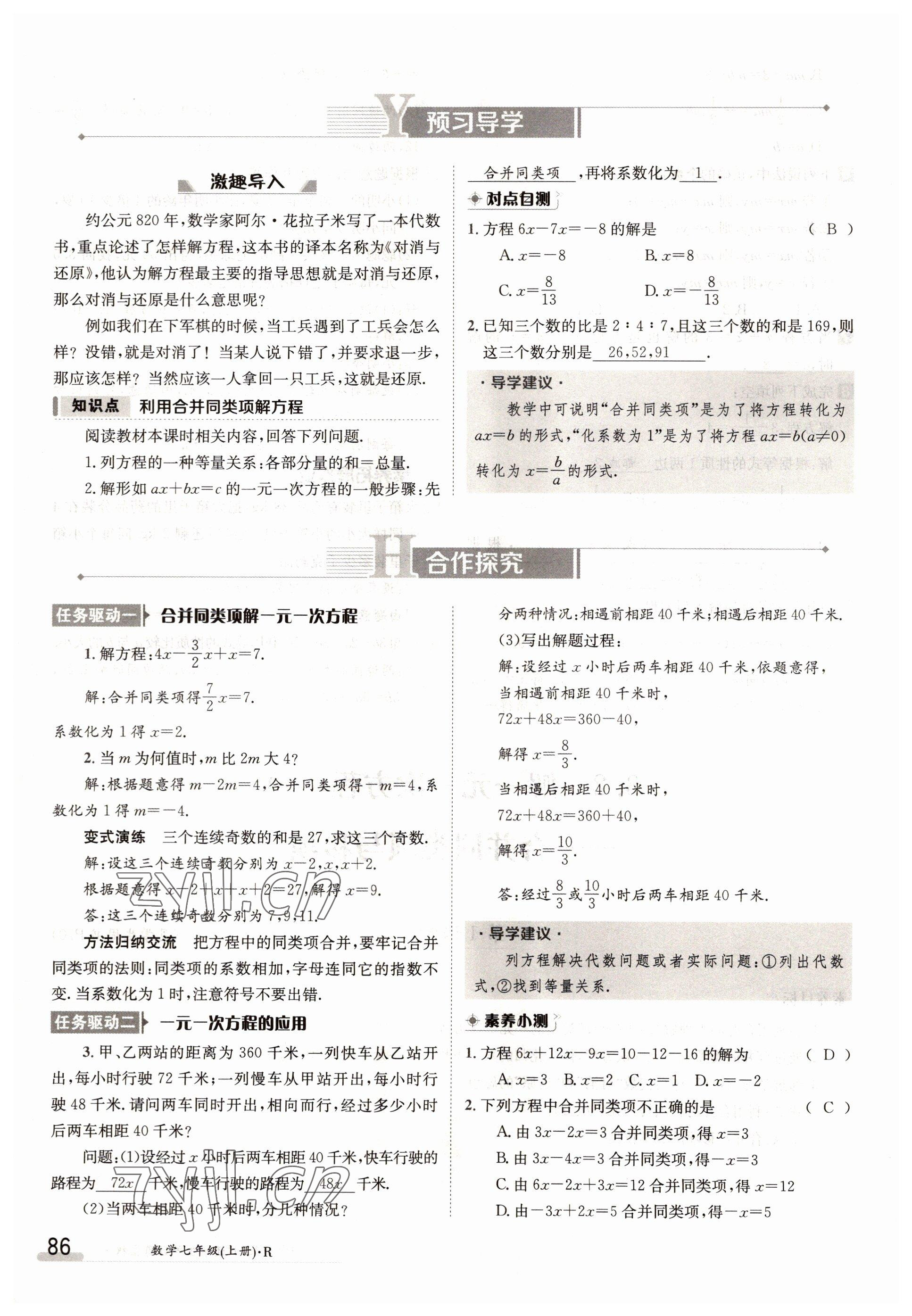 2022年金太阳导学案七年级数学上册人教版参考答案第86页