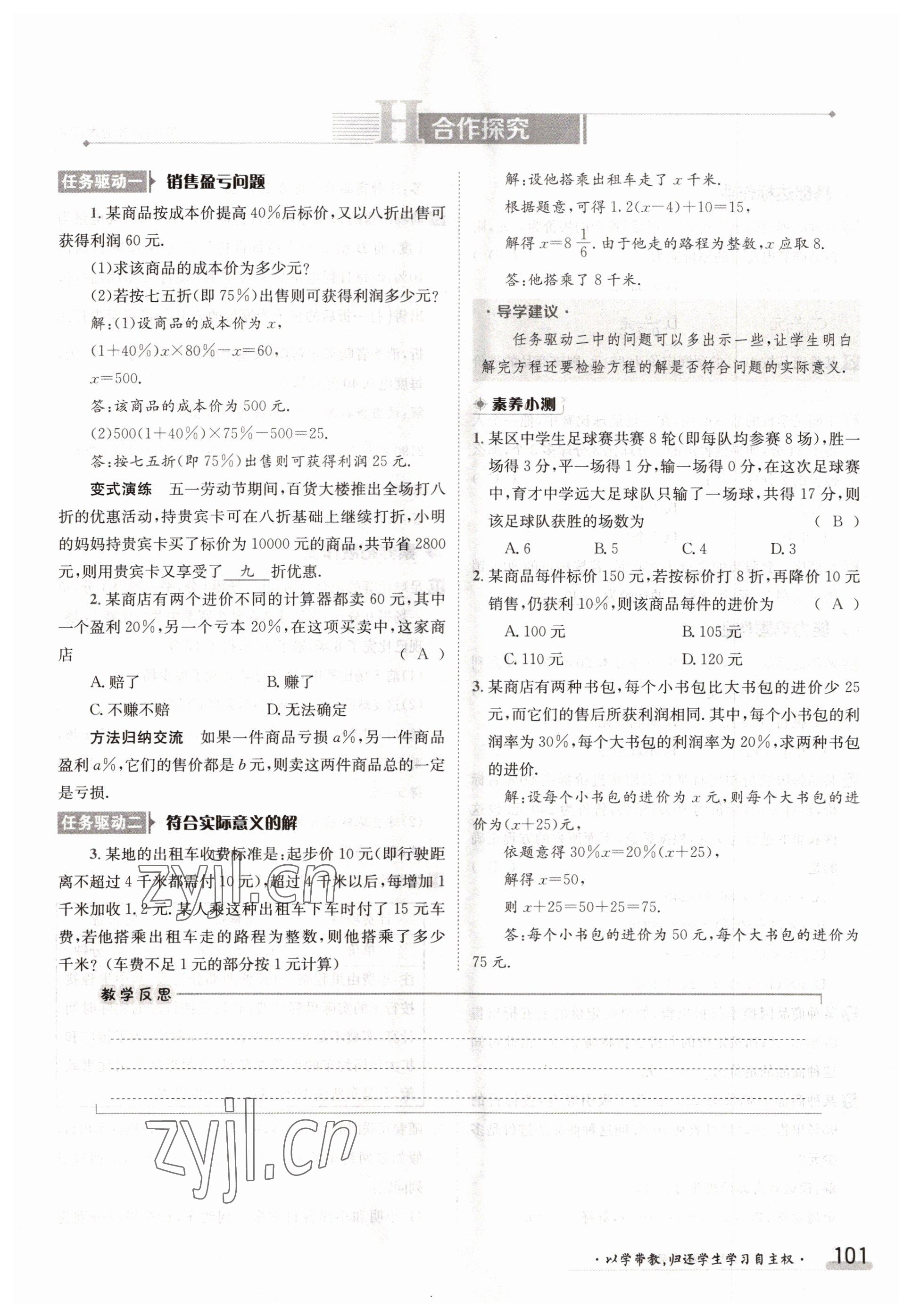 2022年金太阳导学案七年级数学上册人教版参考答案第101页
