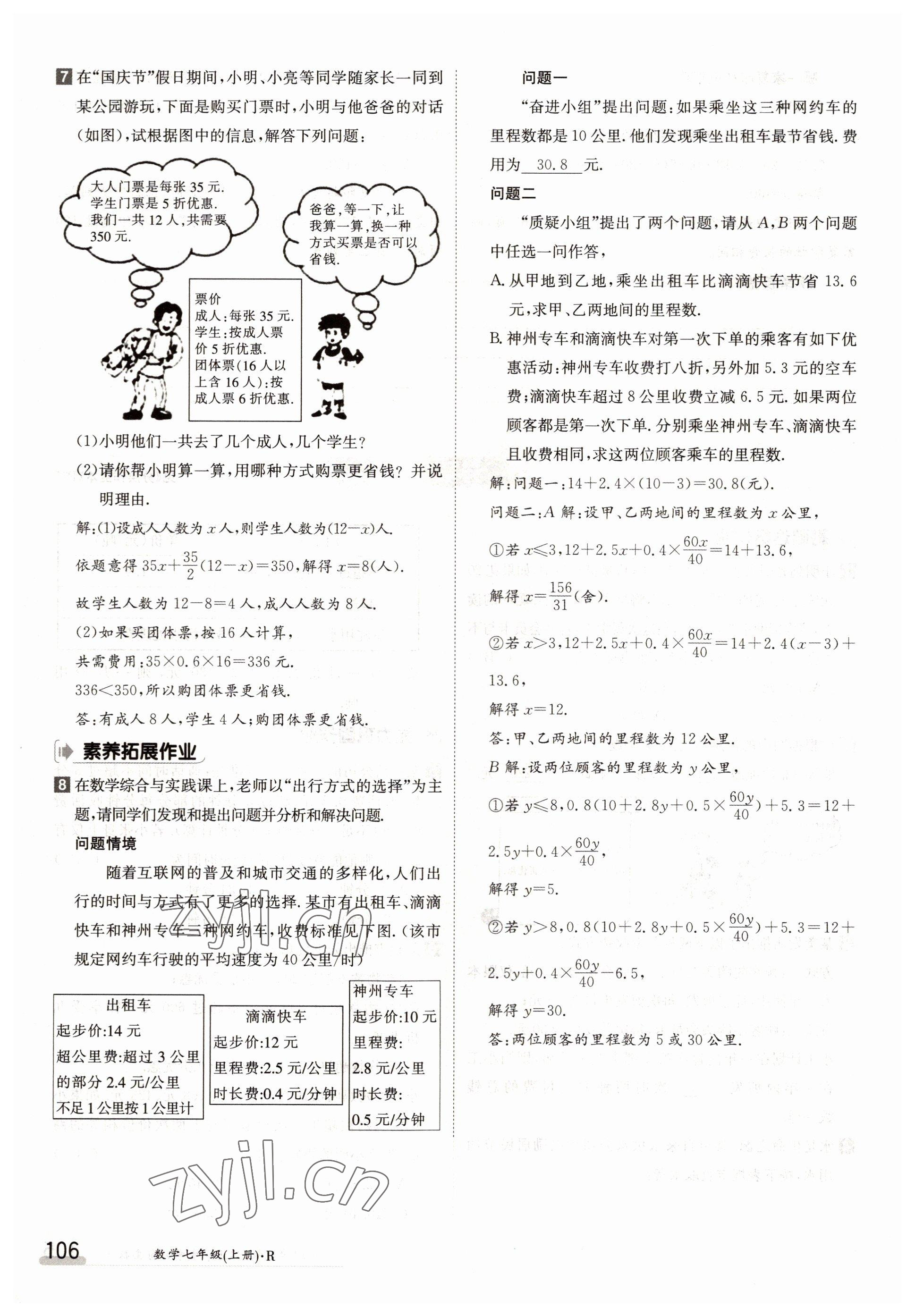 2022年金太阳导学案七年级数学上册人教版参考答案第106页
