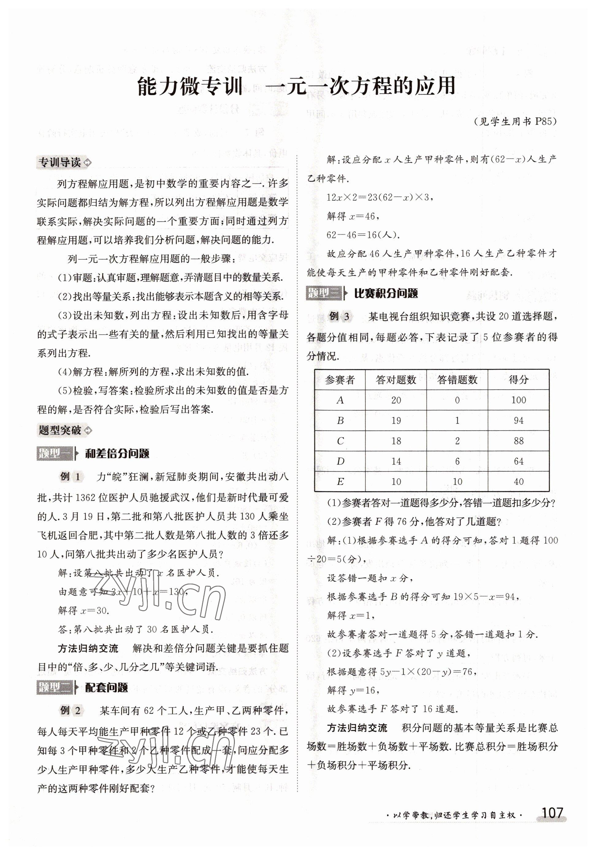 2022年金太阳导学案七年级数学上册人教版参考答案第107页