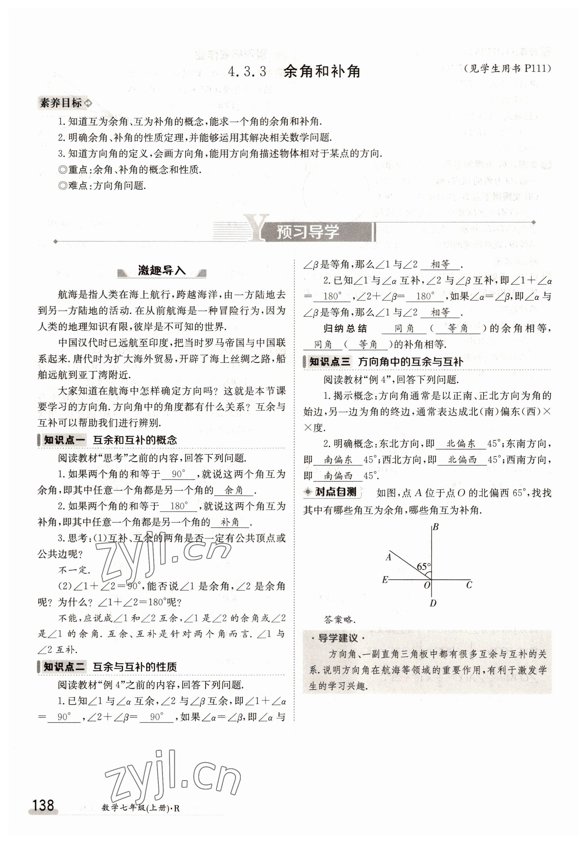 2022年金太阳导学案七年级数学上册人教版参考答案第138页